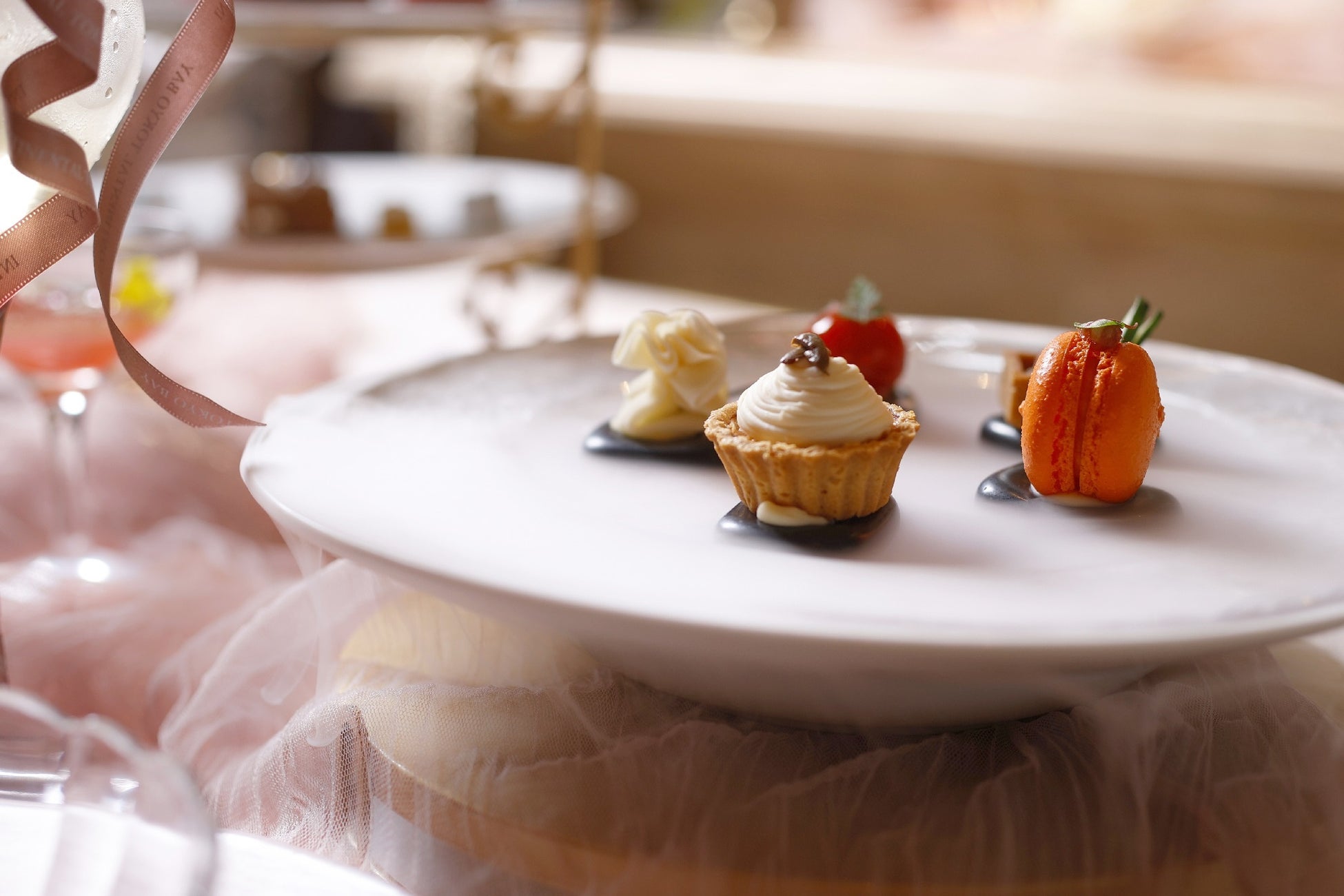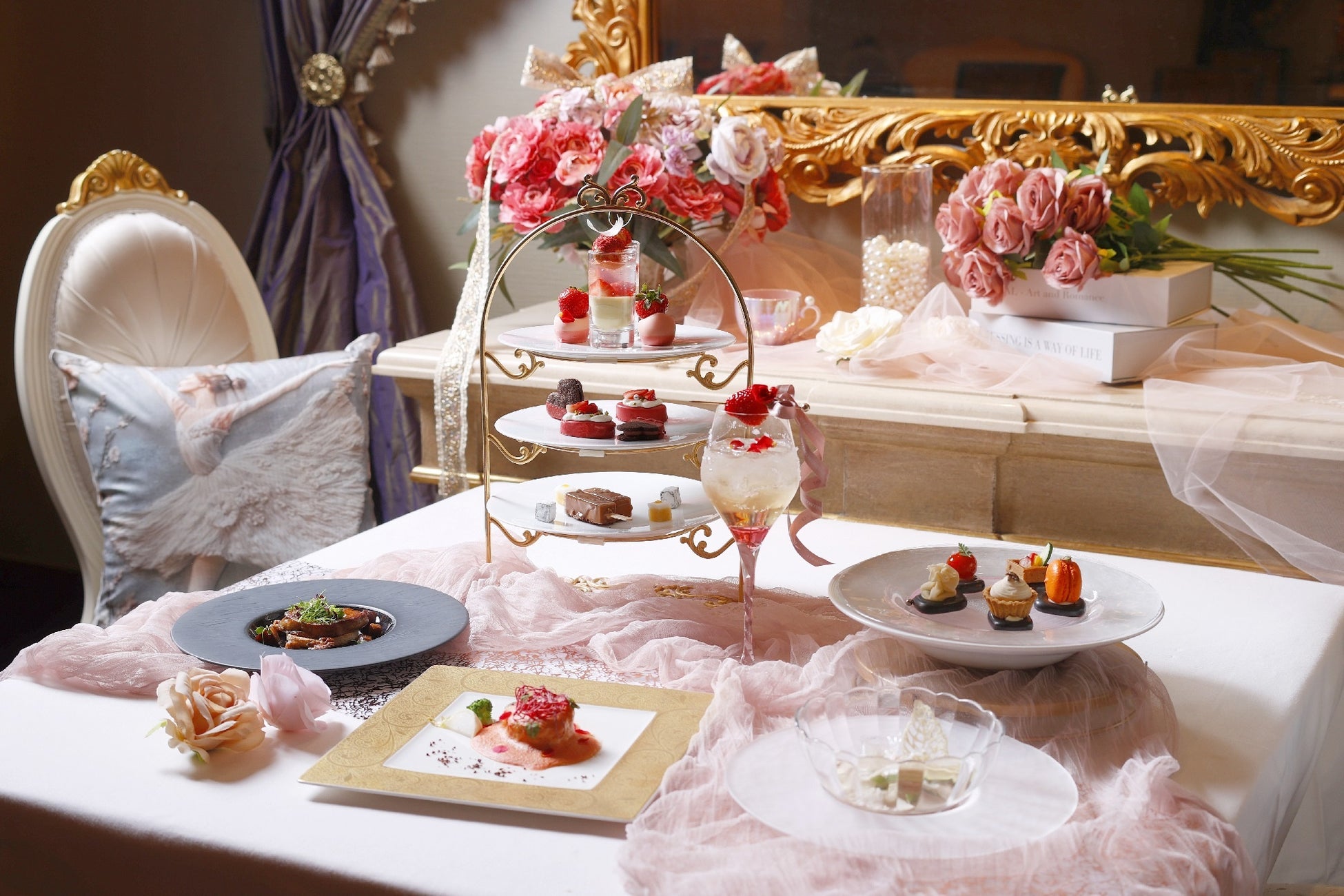演目の終幕には、グァバとエルダーフラワーの透明感で「花のワルツ」の軽やかなひとときを表現したプレデザートを、デザートは旬のいちごとチョコレートをアレンジしたスイーツをアフタヌーンティースタイルで物語の余韻を優雅に締めくくります。