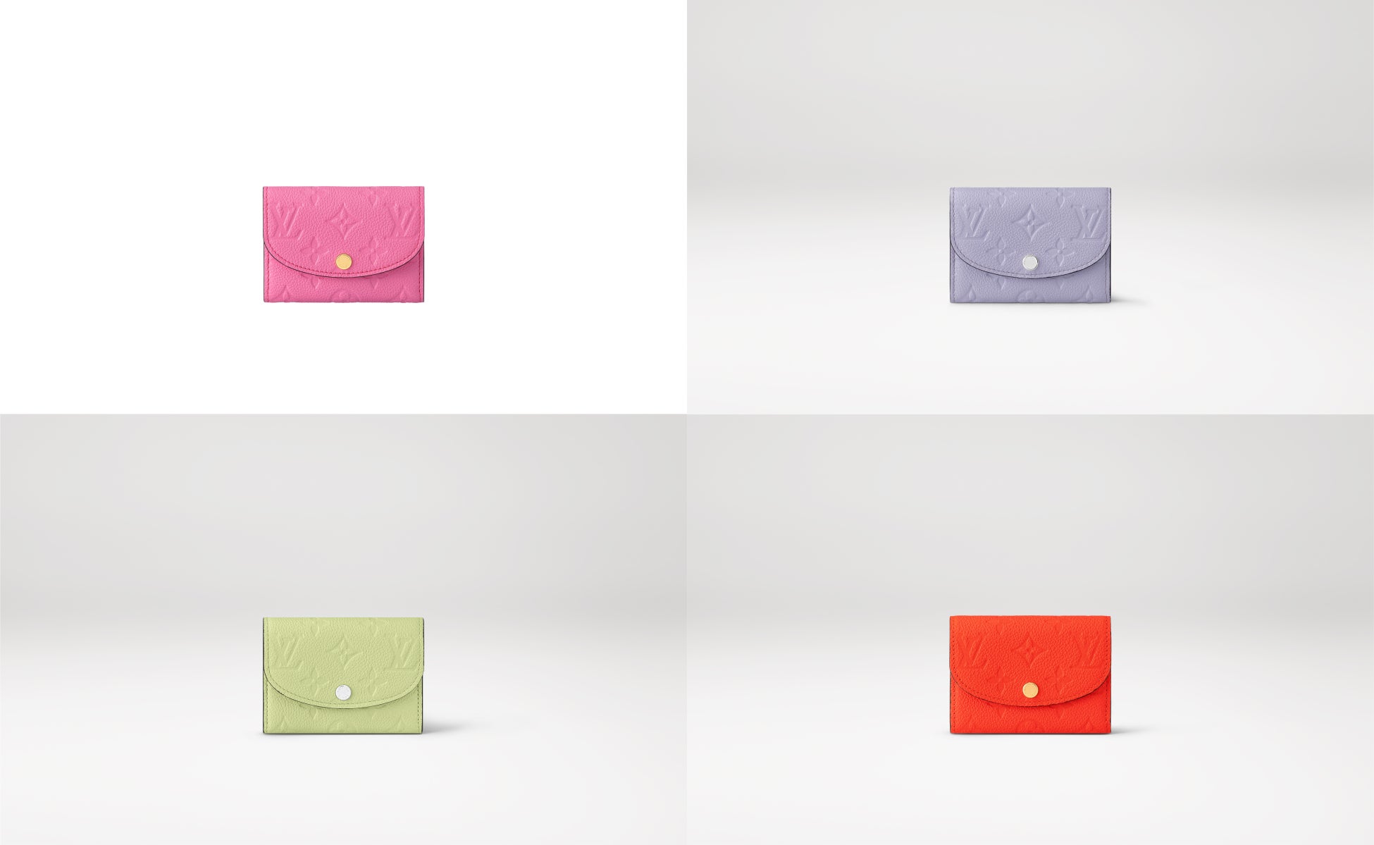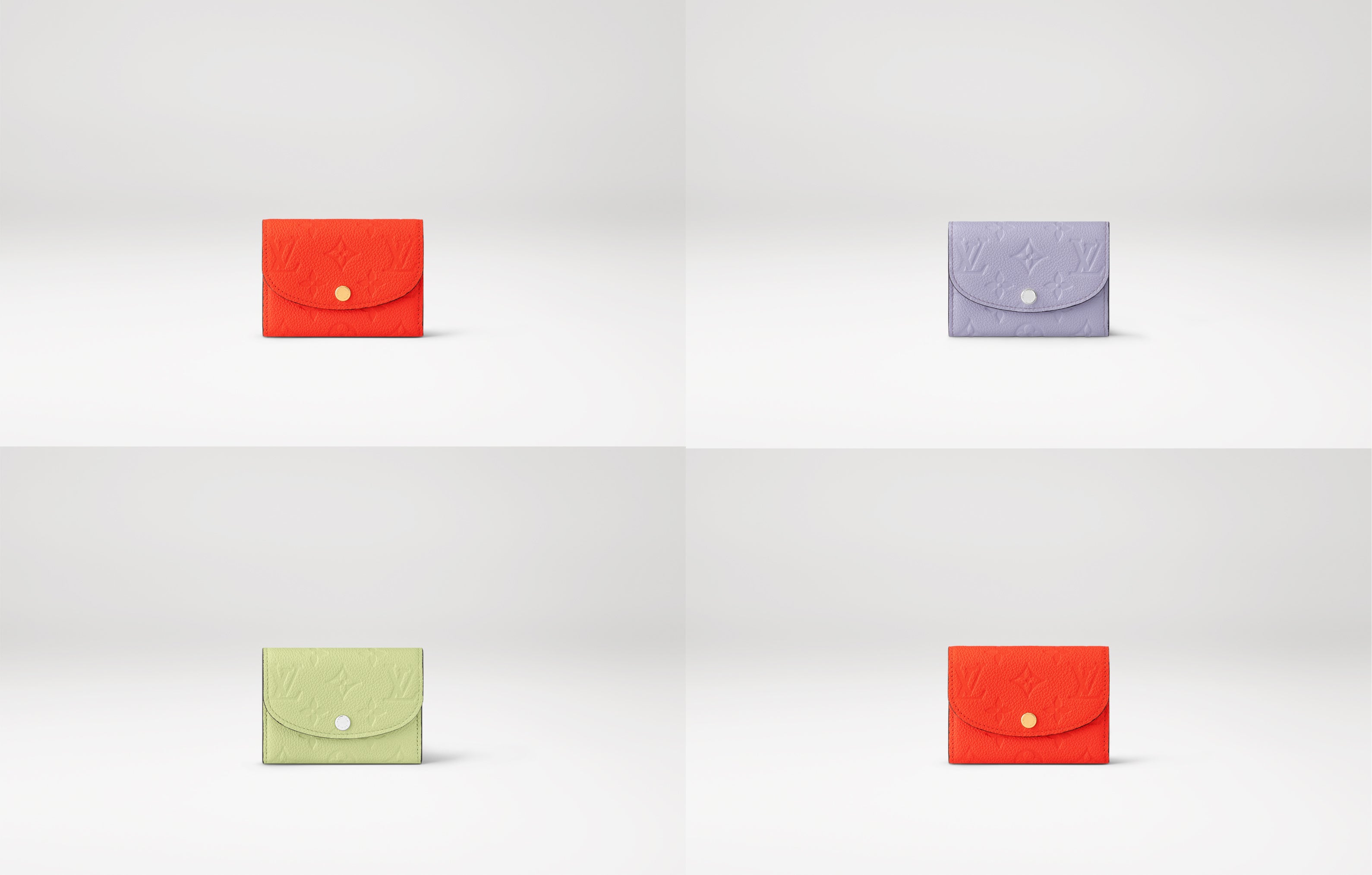 ルイ・ヴィトンのアイコニックなモノグラム・パターンのエンボス加工が特徴の、モノグラム・アンプラント レザーで仕立てた「ポルトモネ・ロザリ」。丸みを帯びたフラップに、刻印を施したスナップボタンをあしらった、小ぶりの財布です。内側には、フラットポケット、ファスナー付きコインポケット、2つのカードスロットを備えています。