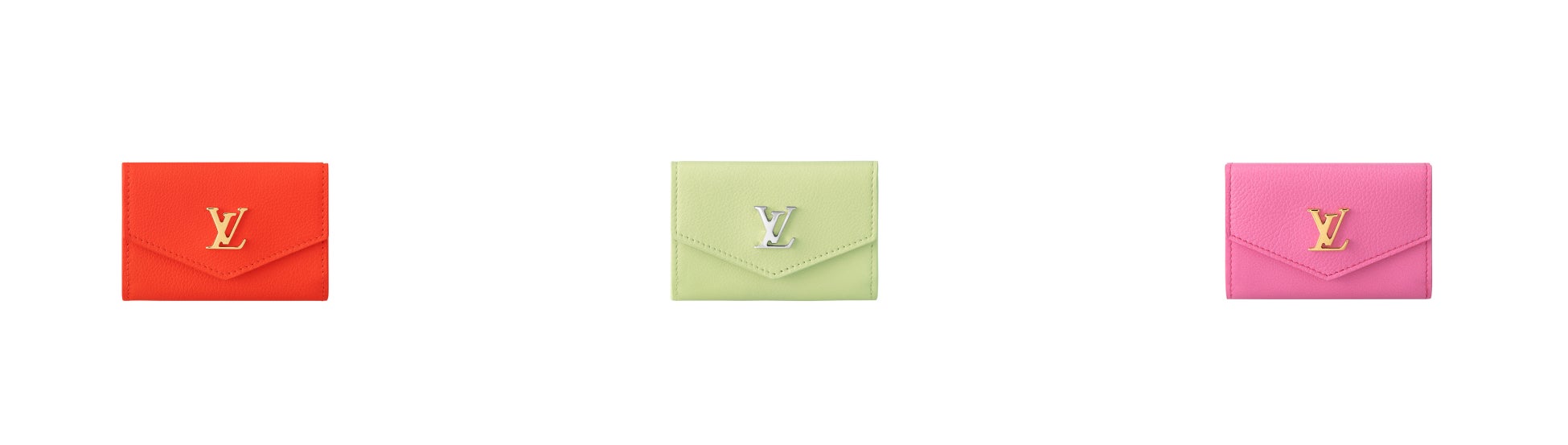 鮮やかな色合いのカーフレザーで再解釈した「ポルトフォイユ・ロックミニ」。バッグやポケットにすっきり入る小ぶりのエンヴェロップ型の財布に、LV イニシャルのスナップボタンが個性を添えます。紙幣を折り畳まずに収納できるロングポケット、コインポケット、3つのカードスロットを備えた大容量も魅力。