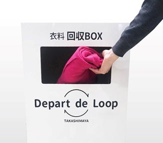 「TSUNAGU ACTION」の一環として、リサイクルシステムを持つ企業とパートナーシップを組み、 髙島屋が“循環型のモノづくり”に取り組むプロジェクト「Depart de Loop」(デパート デ ループ)。このプロジェクトでは、高島屋でのご購入品に限らず、店頭で衣料品、コスメ、羽毛ふとんの回収ボックスを常設し、通年回収しています。