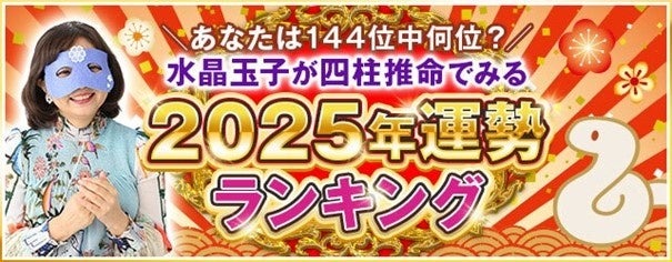 テレビ番組「ゴゴスマ」「ダウンタウンDX」出演で話題の占い師「水晶玉子」が月額公式サイトで、「2025年の運勢占いランキング」を無料公開いたしました。