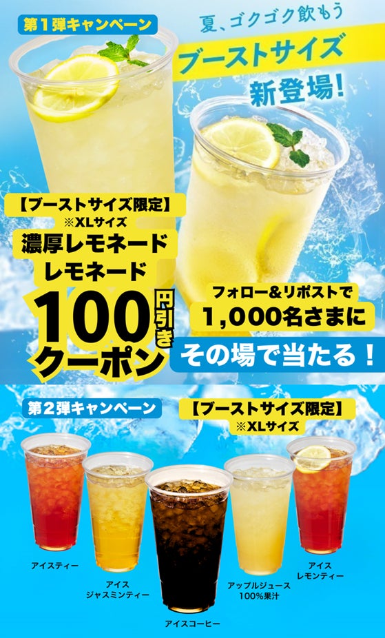 この夏を“ブースト”させるたっぷりゴクゴク飲める爽快感!ベックスコーヒーからブーストサイズ(※XLサイズ)ドリンクが新登場!