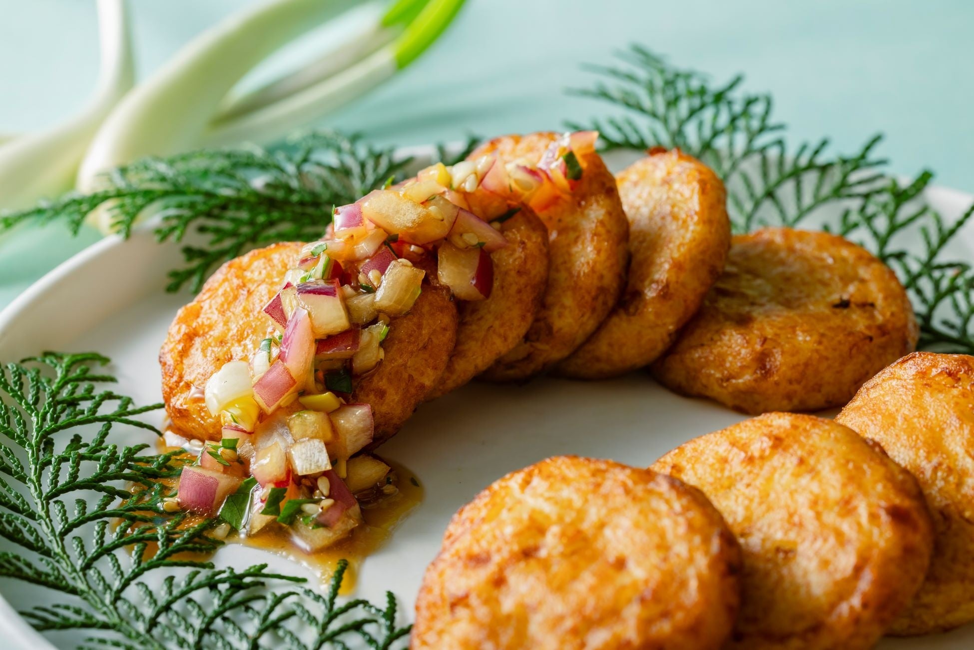 薩摩揚げに、甘らっきょうとピリッとした辛さがアクセントの赤玉ねぎが絶妙に調和した「エシャレットソース」を合わせました。焼酎との相性抜群なソースを思う存分お楽しみください。