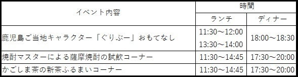 豊かな自然や歴史、食文化など魅力にあふれる鹿児島のご当地キャラクター「ぐりぶー」がお客さまをお出迎えし、ご一緒に写真撮影をお楽しみいただけます。薩摩焼酎の試飲コーナーとかごしま茶の新茶をふるまうコーナーも登場。焼酎は蔵元が厳選した薩摩焼酎の飲み比べを楽しむことができる1日限りの特別なイベントです。