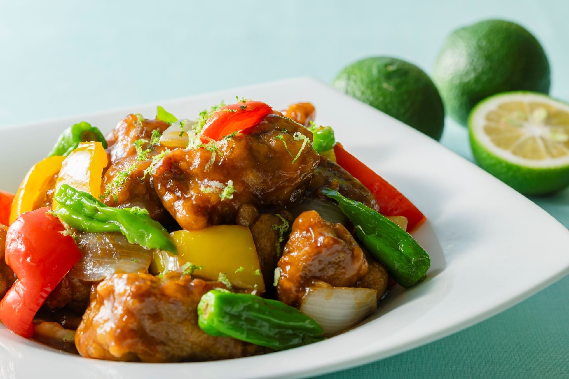 昨年のブッフェでご好評をいただいた酢豚に、香り付けとしてカボスのピールをトッピングし、爽やかな風味をプラスすることで、更に味わいが引き立ちます。