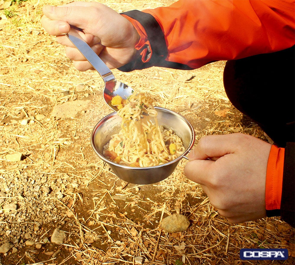 ダンジョンに潜るなら必携。ステンレス加工の最高峰、新潟県燕市製の本格的なステンレスのシェラカップ&ヌードルスプーンは「東京野営具」とCOSPAのコラボアイテムでラインナップ。
