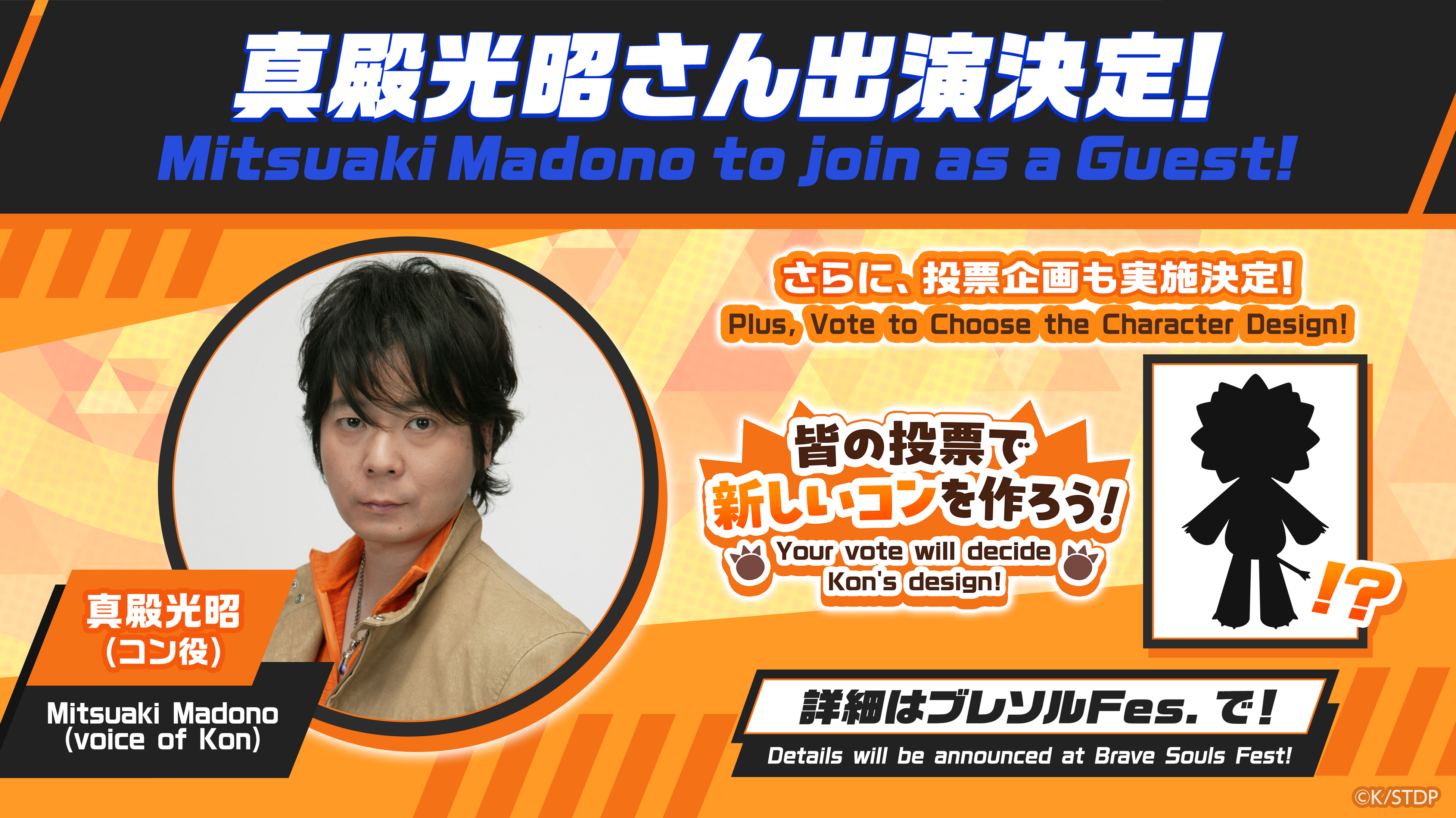 BLEACH Brave Souls 10th Anniversary Fes.にて、ゲーム内で登場予定のコンの新デザインを決める特別企画を実施します。昼の部・夜の部いずれからもご参加いただけます。コン役の真殿光昭さんの出演も決定!