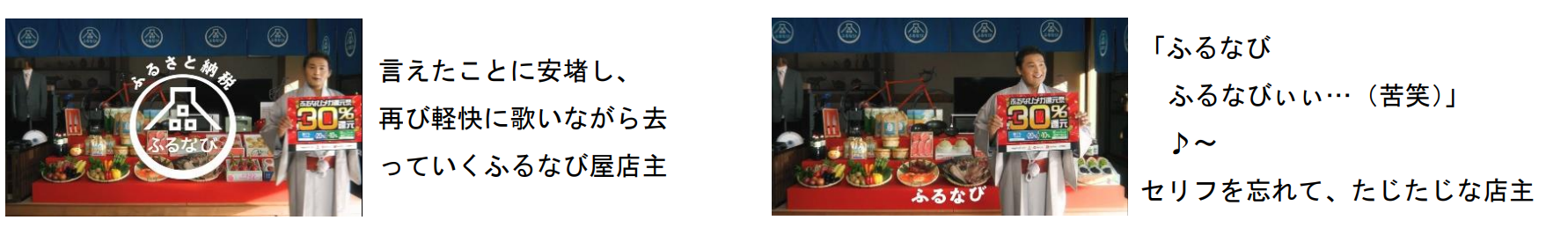 昨年に引き続き、貴乃花さんが演じる、老舗「ふるなび屋」の店主が、お馴染みの歌にのせて“お得なキャンペーン”や、“ふるなびトラベルの魅力”について軽快に歌いながら紹介する内容となっているのですが、途中でセリフを忘れてはにかんだり、カンペをチラ見したり…貴乃花さんの様々な表情が見どころの新TV-CM。
