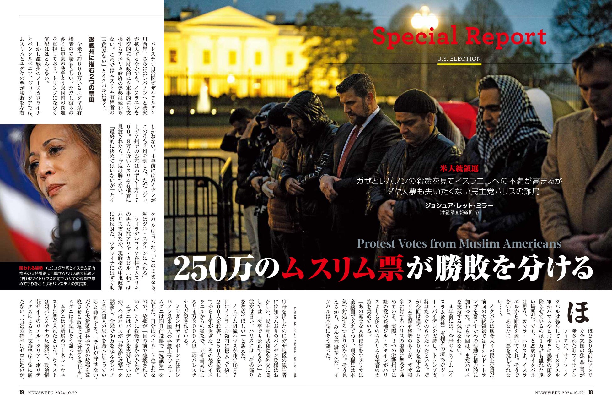 250万の「イスラム教徒票」が大統領選の勝負を分ける。投開票まで2週間という最終版でハリスが直面する難局をレポートする『イスラエル・リスク』ニューズウィーク日本版10/29号は好評発売中!
