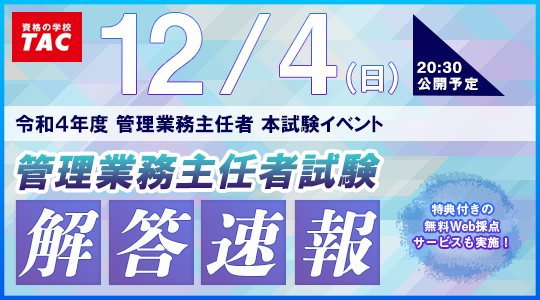 【TAC管理業務主任者 解答速報!】令和4年度 管理業務主任者試験 解答速報を12/4(日)試験当日に公開!