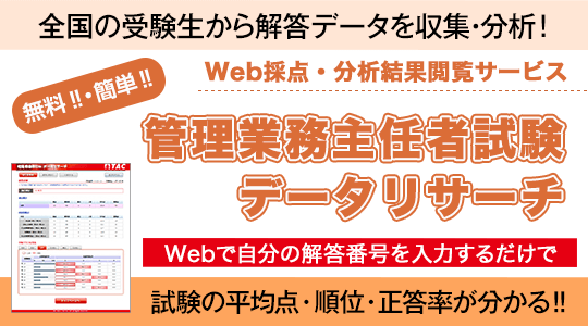 ※解答速報および解答解説会の解説、データリサーチの分析は、TAC(株)が独自の見解に基づき、サービスとして情報を提供するもので、試験機関による本試験の結果等(合格基準点・合否)について保証するものではございません。
