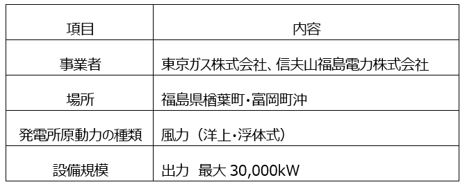 東京ガス株式会社(社長:内田 高史、本社:東京都港区、以下「東京ガス」)と信夫山福島電力株式会社(社長:渡辺和弘、本社:福島県福島市、以下「信夫山福島電力」)は、福島沖における浮体式洋上風力発電事業の検討(「本検討」)を開始しました。