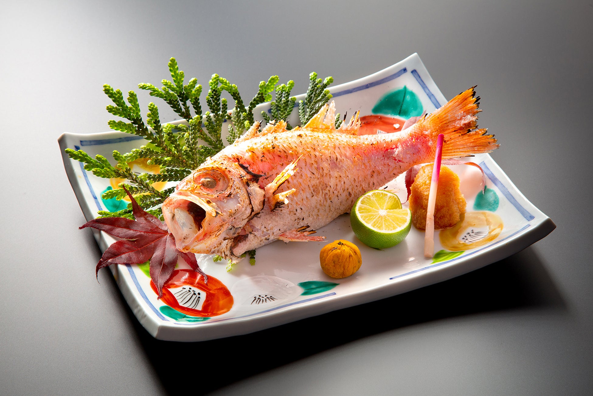 ズワイガニ、のどぐろ、輪島ふぐ、甘海老などの海幸、能登牛、加賀野菜、合鴨の治部煮などを、加賀会席と本格的な鉄板焼でご賞味いただけます。