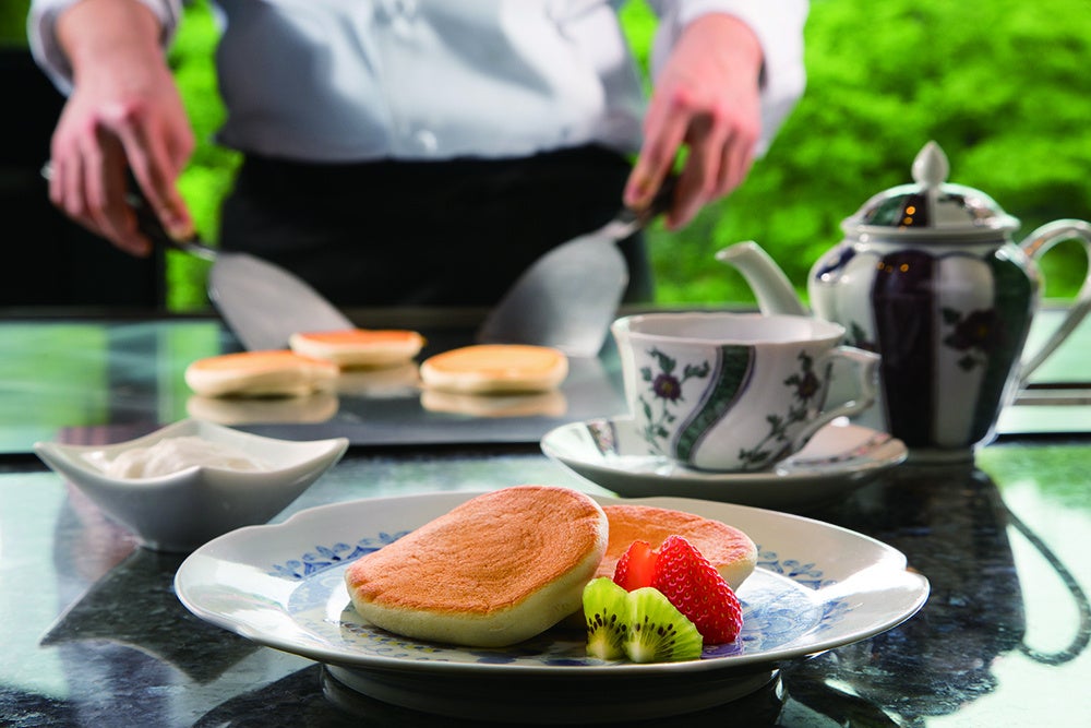 翌朝の朝食は、和の彩をちりばめた「加賀能登朝食」、客室によってシェフが目の前で焼く、ふわふわオムレツが目にも美味しい「鉄板ブレックファスト」も選べます。
