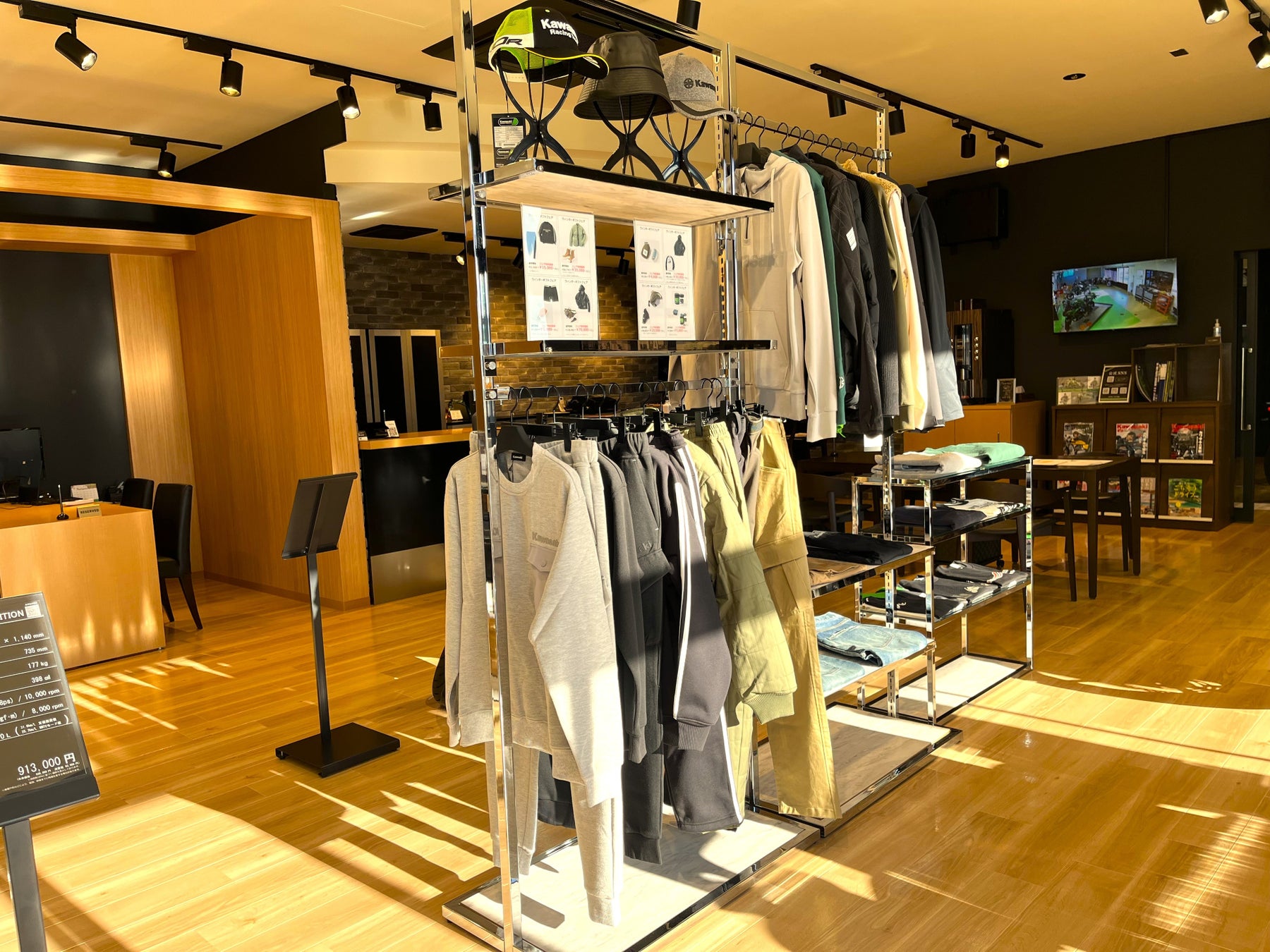 プラザアパレルやグッズは店内のアイランドスペースに展示。実際に手に取って確かめやすいレイアウトです。