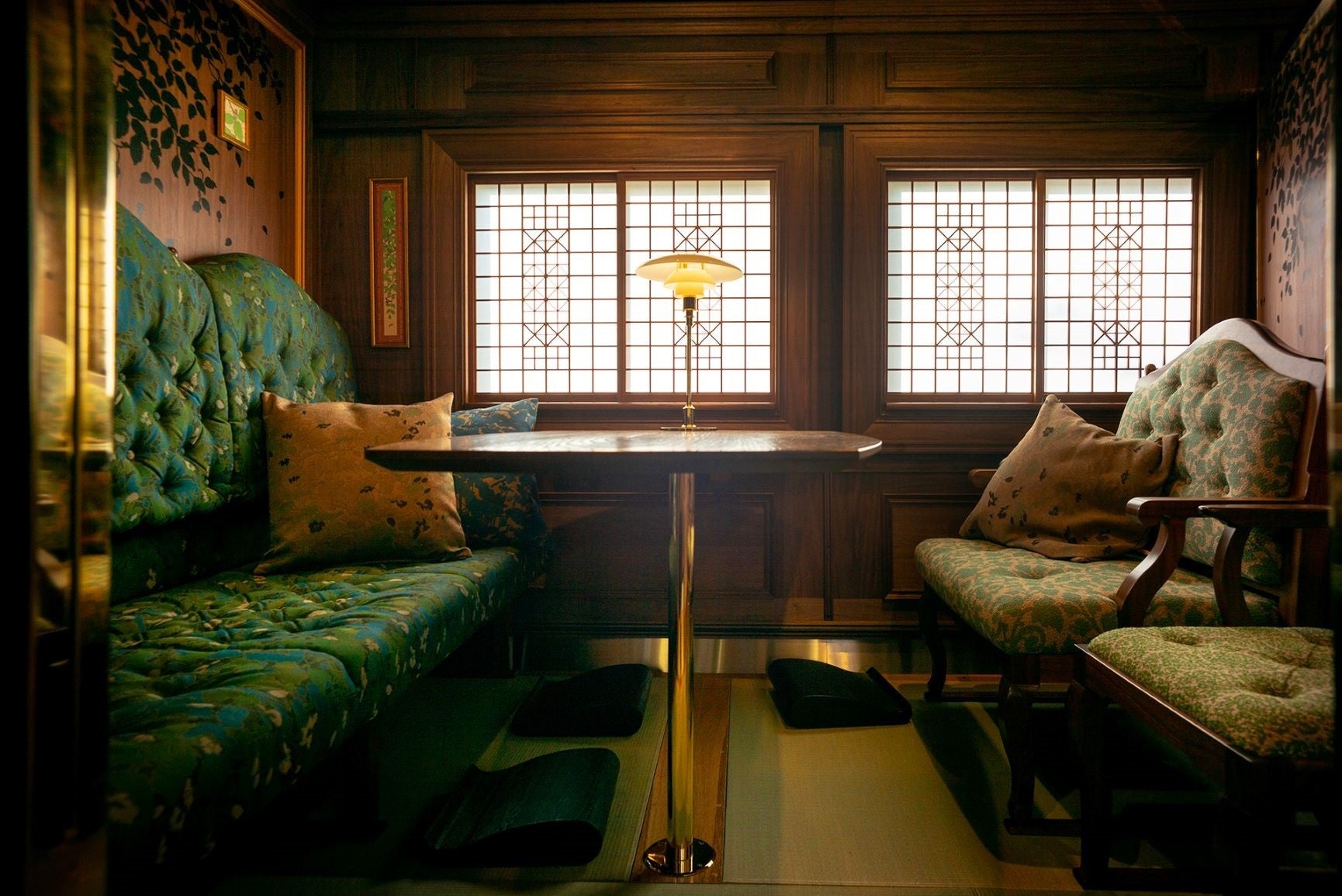 「36ぷらす3」は、黒と金で彩られたスタイリッシュな外観が特徴のD&S(デザイン&ストーリ)列車です。クラシックな雰囲気の客室や、光天井と光壁で開放的な空間を演出するマルチカー、そして787系電車「つばめ」のカウンターを17年ぶりに復活させたビュッフェが備わっています。列車内には熊本県八代市産のイ草を使った畳や、福岡県大川市の「組子」が随所に用いられており、車内で提供される食事やドリンク、コト体験と相まって、まさに「走る九州」といえる列車です。