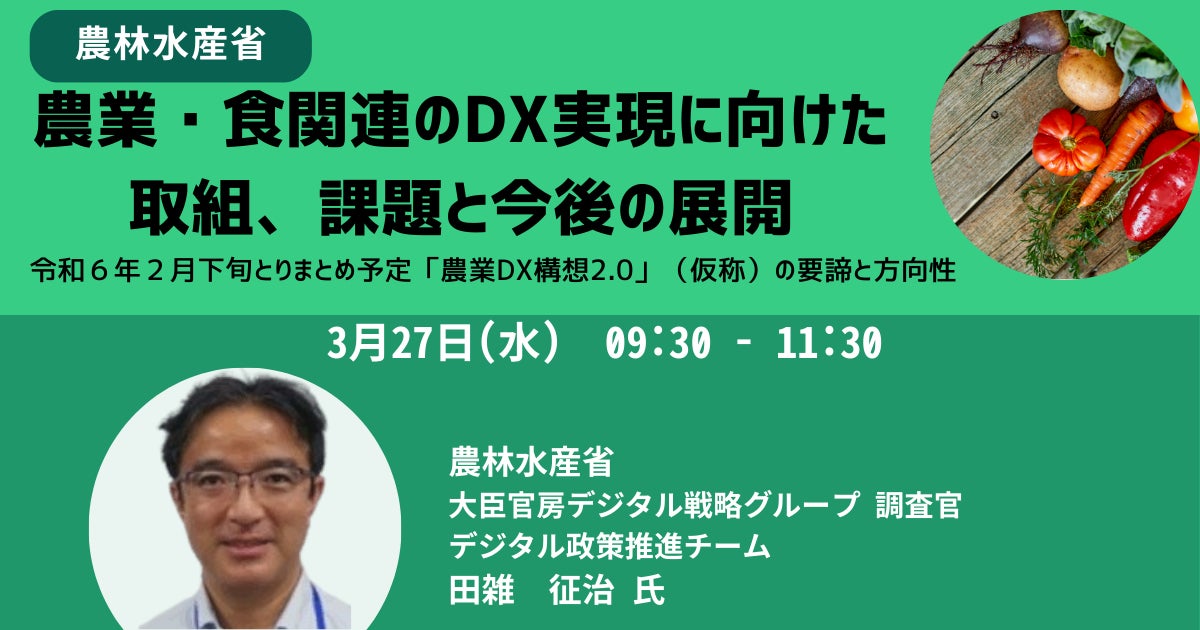 【JPIセミナー】農林水産省「農業・食関連のDX実現に向けた取組、課題と今後の展開」3月27日(水)開催