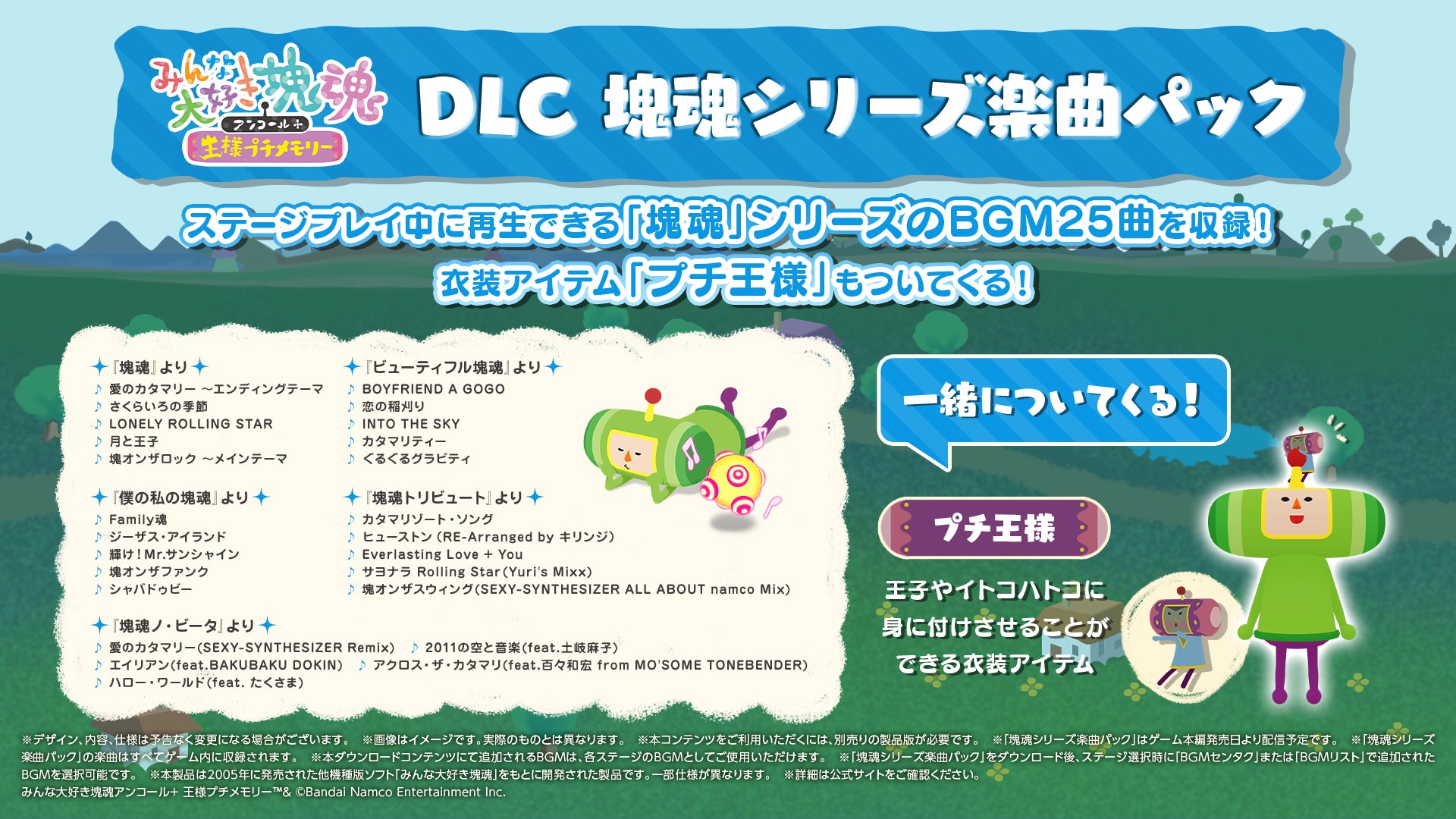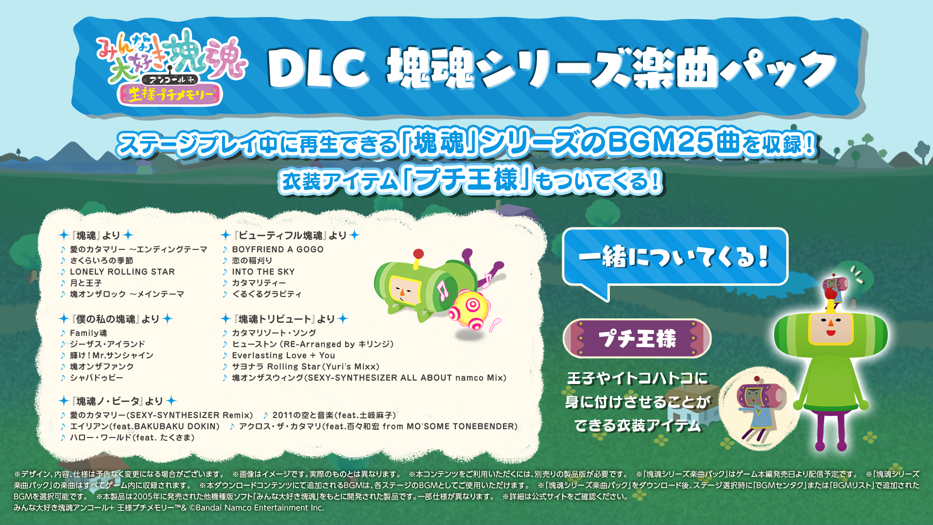 ・DLC「塊魂シリーズ楽曲パック」(塊魂シリーズ楽曲パック+衣装アイテム「プチ王様」)