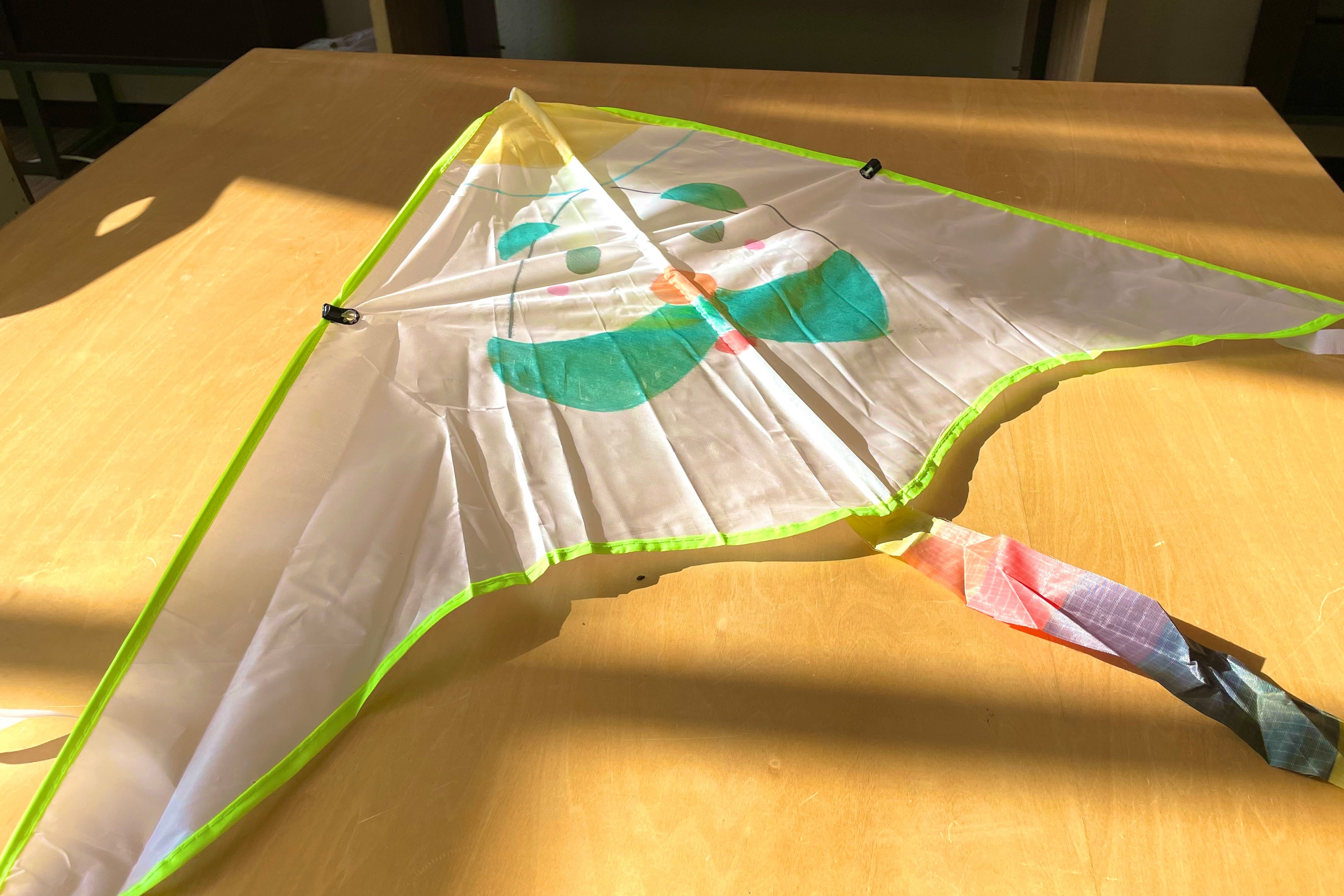 凧にペンで自由に絵付けをした後は、完成した凧をホテルの中庭で飛ばすことができます。