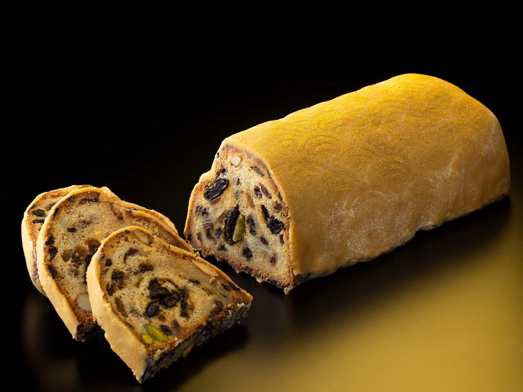 <特徴>ドイツ発祥のクリスマス定番の菓子。キルシュなどの洋酒にじっくりと漬け込んだ5種類のドライフルーツと、2種類のナッツを練りこんでいます。洋酒のコクと、和三盆の上品な甘みが感じられるシュトーレンです。クリスマスを迎えるまでの間、日々熟成し深まっていく味わいをお楽しみください。