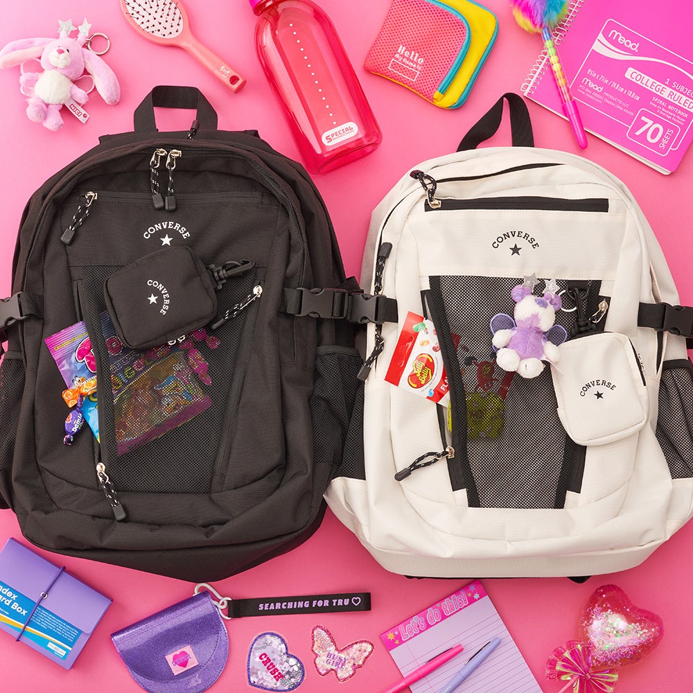 フロントのメッシュポケットには、お気に入りの小物や推し活グッズなどを入れて、自分だけのオリジナルアレンジを楽しむのがおすすめ。全国のPLAZA・MINiPLAで“MY FAVE”なバックパックを見つけて、ワクワクの新学期を迎えよう!
