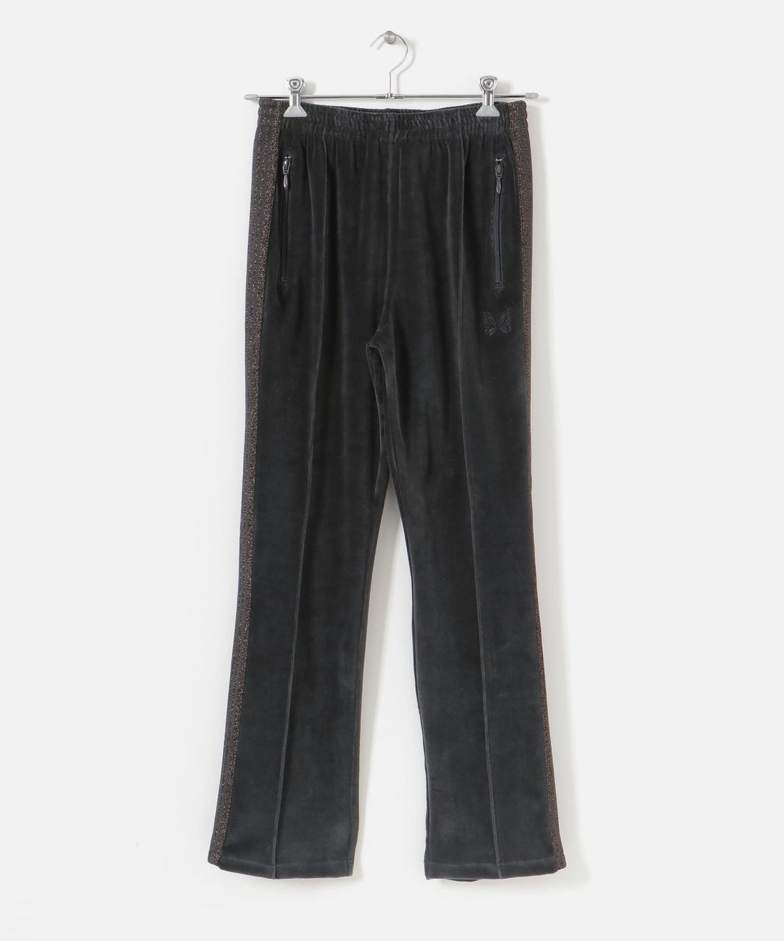 スポーティーなイメージのある Narrow Track Pants ですが、ほどよく光沢のあるチャコールグレーのベロア素材に、ブラックをベースにしたラメを組み合わせたことで、華やかさはありますが主張もしすぎないイメージ。