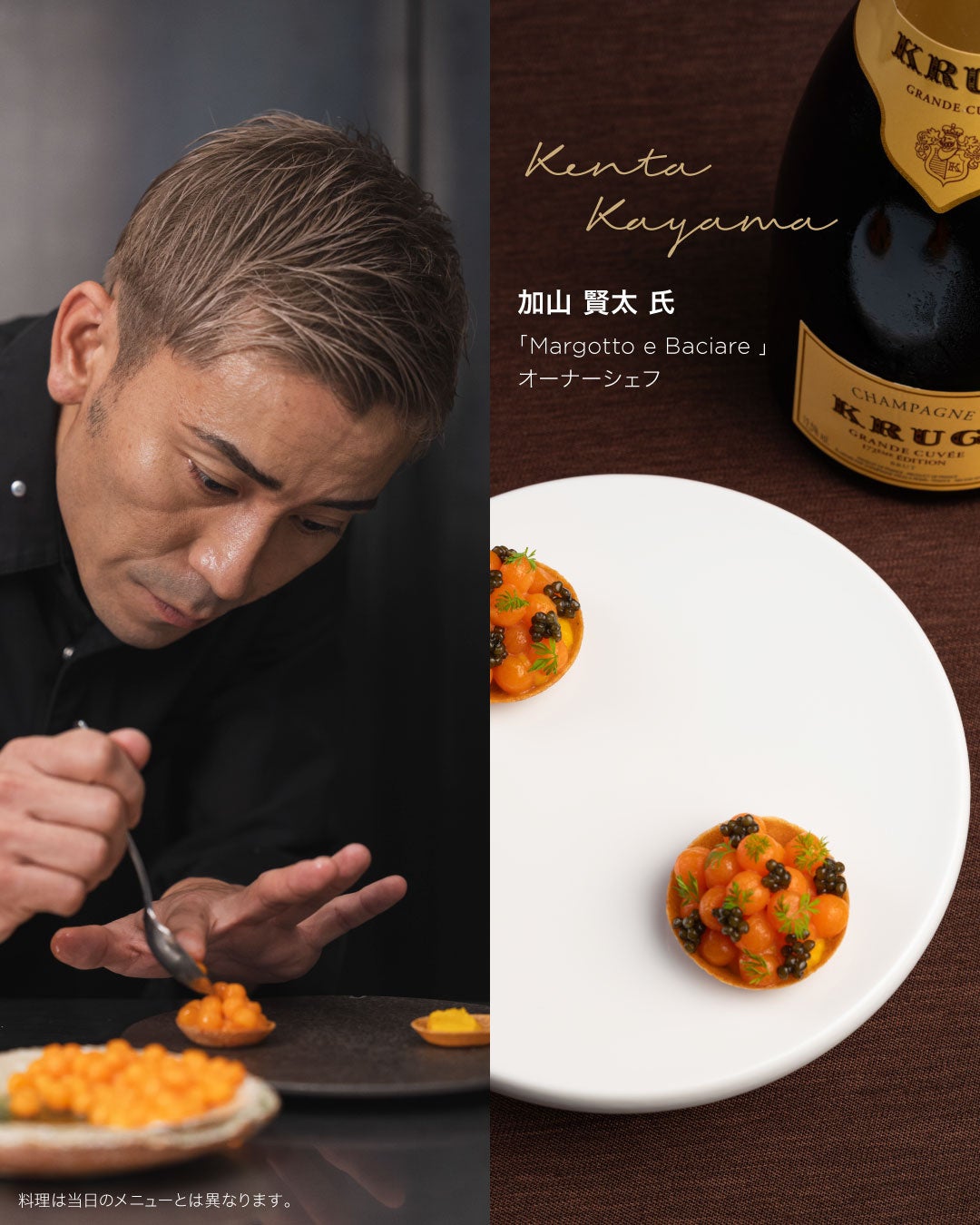 クリュッグ アンバサダーが共演 「Margotto e Baciare」の加山賢太氏 &「大工町 鮨人」の木村泉美氏 「KRUG x CARROT FOUR HANDS DINNER」を二日限定で開催