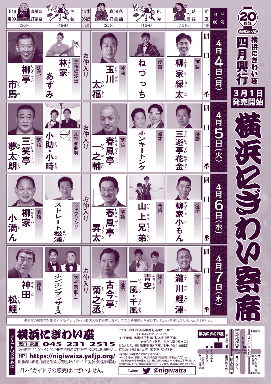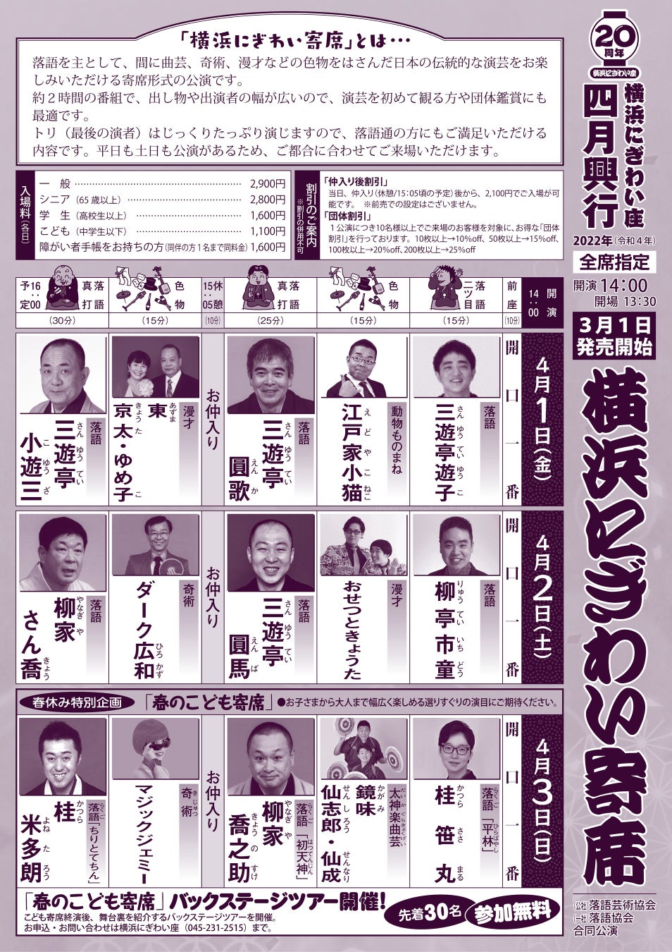 ■公演名:「横浜にぎわい座四月興行 20周年記念公演 横浜にぎわい寄席」