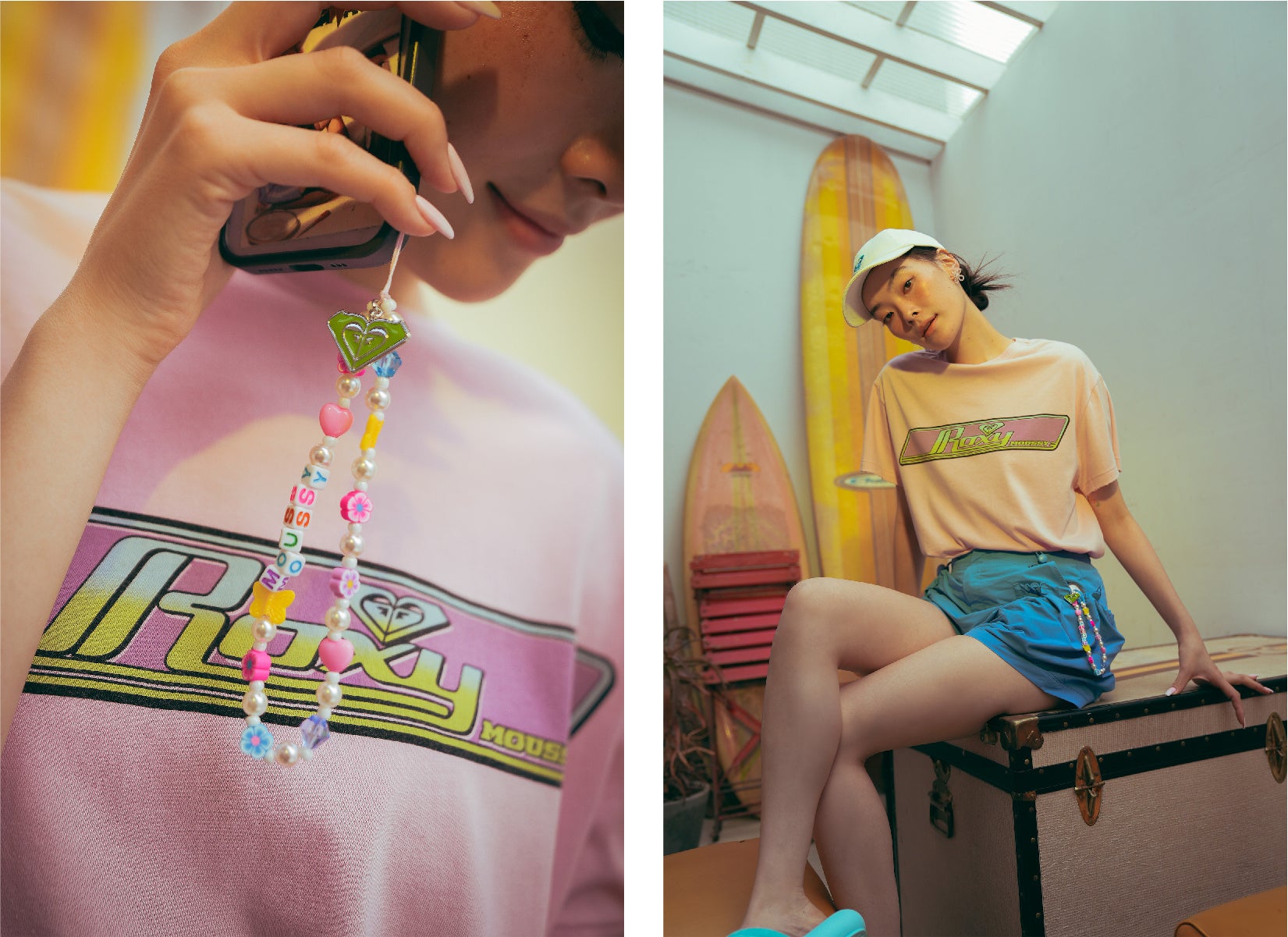 フェミニンなファッション性を融合したスタイルを同時に提案するROXYは、