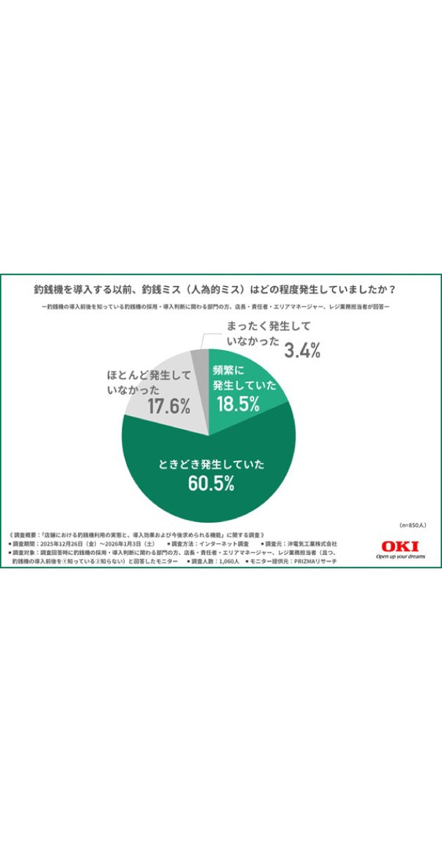 人手不足や業務効率化への対応が求められる中、店舗運営においては、レジ業務や現金管理の負担をいかに軽減するかが重要なテーマとなっています。釣銭ミスへの対応やレジ締め作業、教育負荷など、現金を扱う業務ならではの課題を感じている現場も多いのではないでしょうか。では、実際の店舗ではどのような課題があり、釣銭機はどのような目的で導入され、どのような効果が実感されているのでしょうか。また、今後の釣銭機にはどのような機能や性能が求められているのでしょうか。そこで今回、OKIは、釣銭機の採用・導入判断に関わる部門の方、店長・責任者・エリアマネージャー、レジ業務担当者を対象に、「店舗における釣銭機利用の実態と、導入効果および今後求められる機能」に関する調査を行いました。