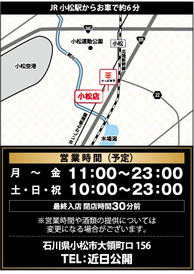 石川県待望の2店舗目!“北陸の空の玄関口”である石川県・小松市にオープンいたします。