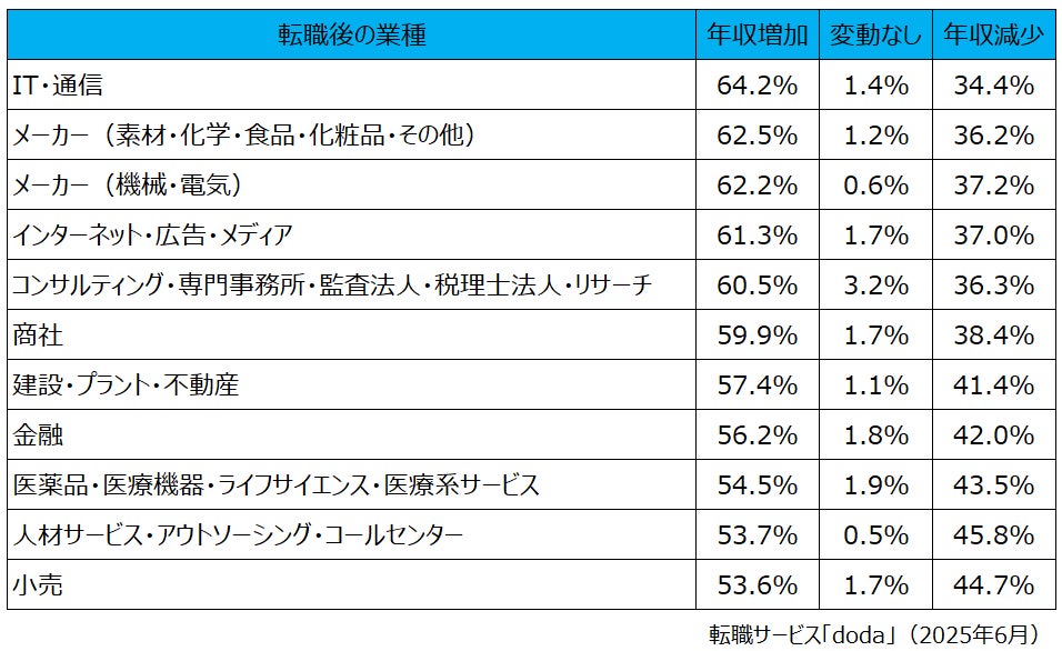 doda転職前後の年収変動レポート 【2025年5月版】