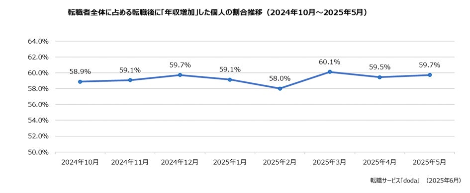 転職後に「年収増加」した個人の割合:59.7%