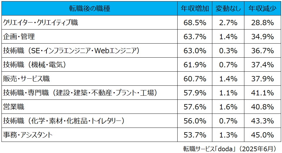 2.転職後に「年収増加」した個人