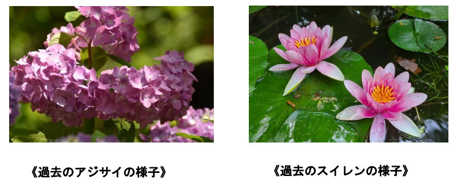 なお、当社が運営する京王百草園(最寄り駅:百草園駅)では約500株のアジサイが6月上旬から中旬に見頃を迎えます。武蔵野の面影を色濃く残す約26,000㎡の園内には新緑の美しいモミジやなどが植栽されており、木漏れ日の下に咲くアジサイの美しさを一層引き立てています。また、アジサイの他スイレンなどの季節の花々が見ごろを迎えます。