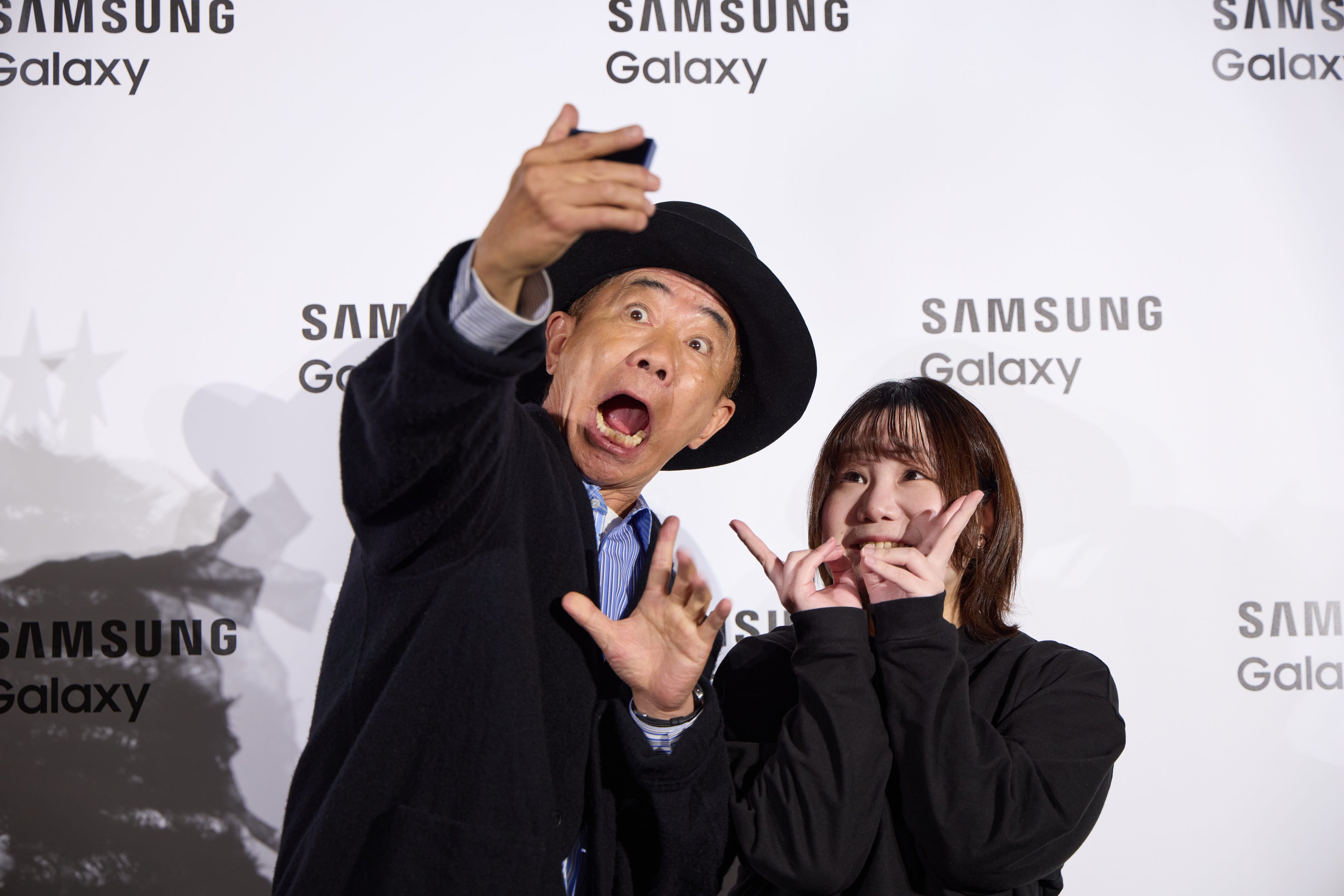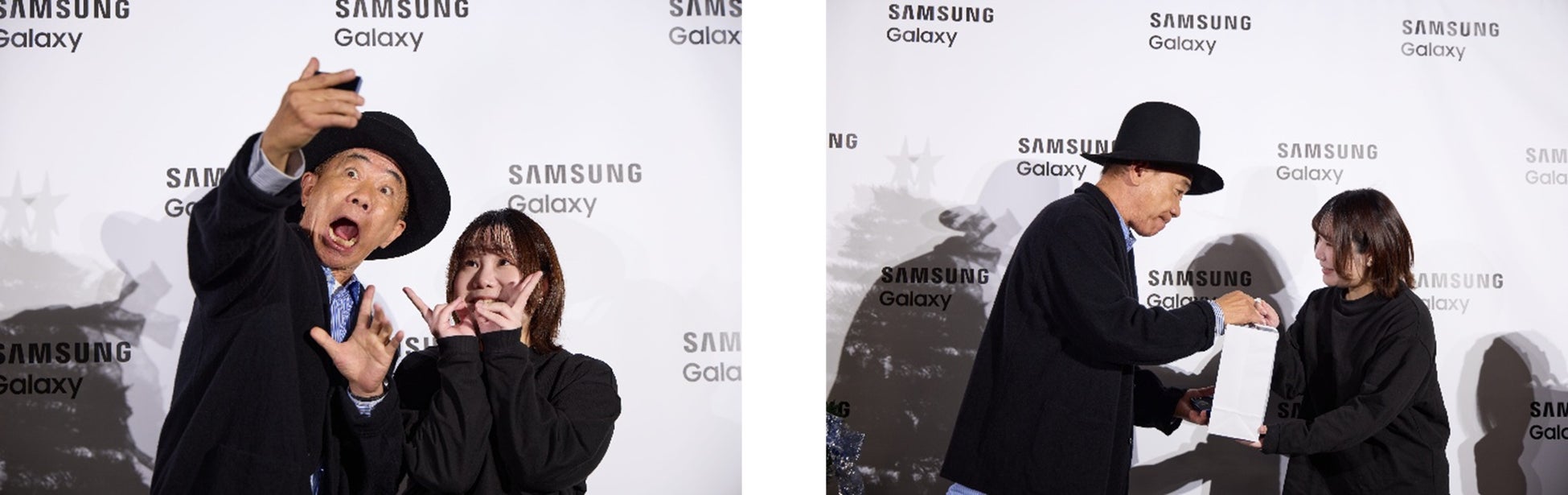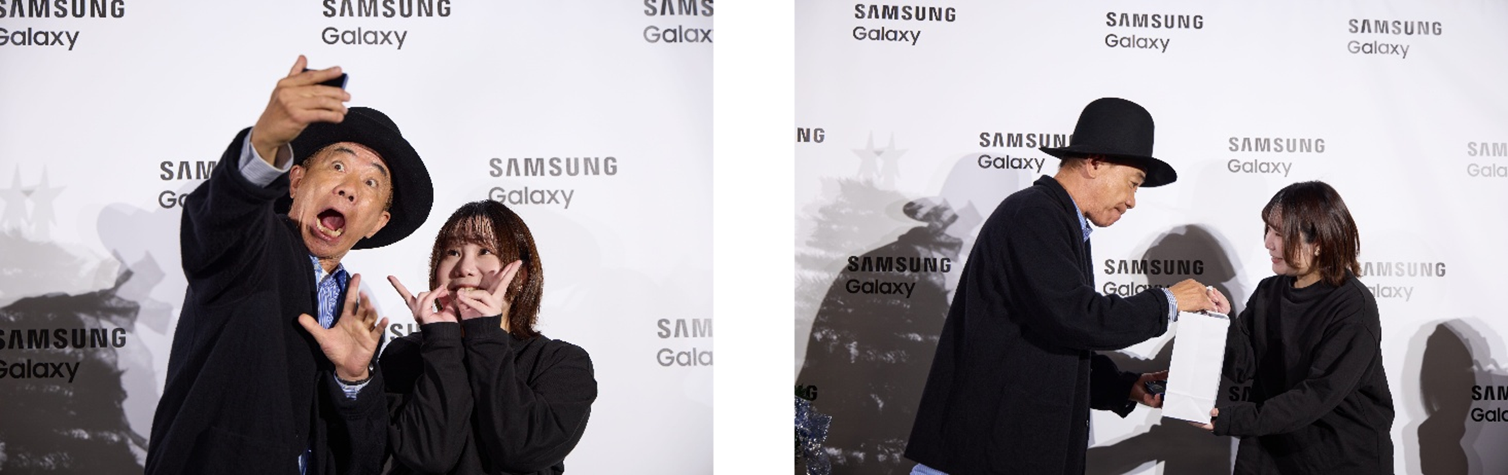 さらに、Samsung Galaxyとの日常や活動を振り返った「今年の漢字」と「来年の抱負」について語っていただいたトークセッションや、抽選で選ばれた招待客との「手のひらシャッター」を活用した撮影会、木梨サンタクロースによる招待客へのサプライズプレゼントの配布も実施いたしました。