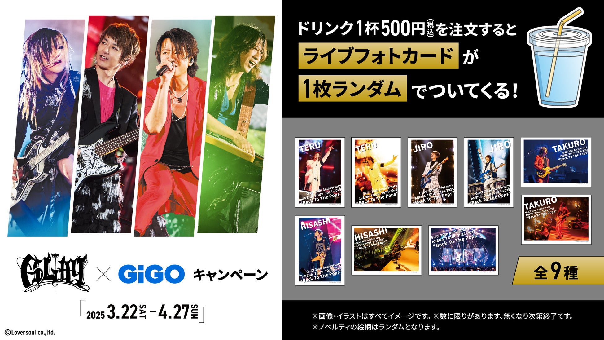 株式会社GENDA GiGO Entertainment(本社:東京都港区 代表取締役社長:二宮 一浩 以下、「当社」)は、GiGOグループのお店におきまして2025年3月22日(土)より、2025年4月に30周年記念ベストアルバムを2タイトル同時リリースする人気ロックバンド『GLAY』とのコラボレーションキャンペーンを開催いたします。