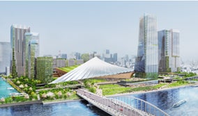大規模集客・交流施設(マルチスタジアム)、 ライフサイエンス・商業複合棟、 MICE・ホテル・レジデンス棟、 舟運・シアターホール複合棟など合計9棟 |