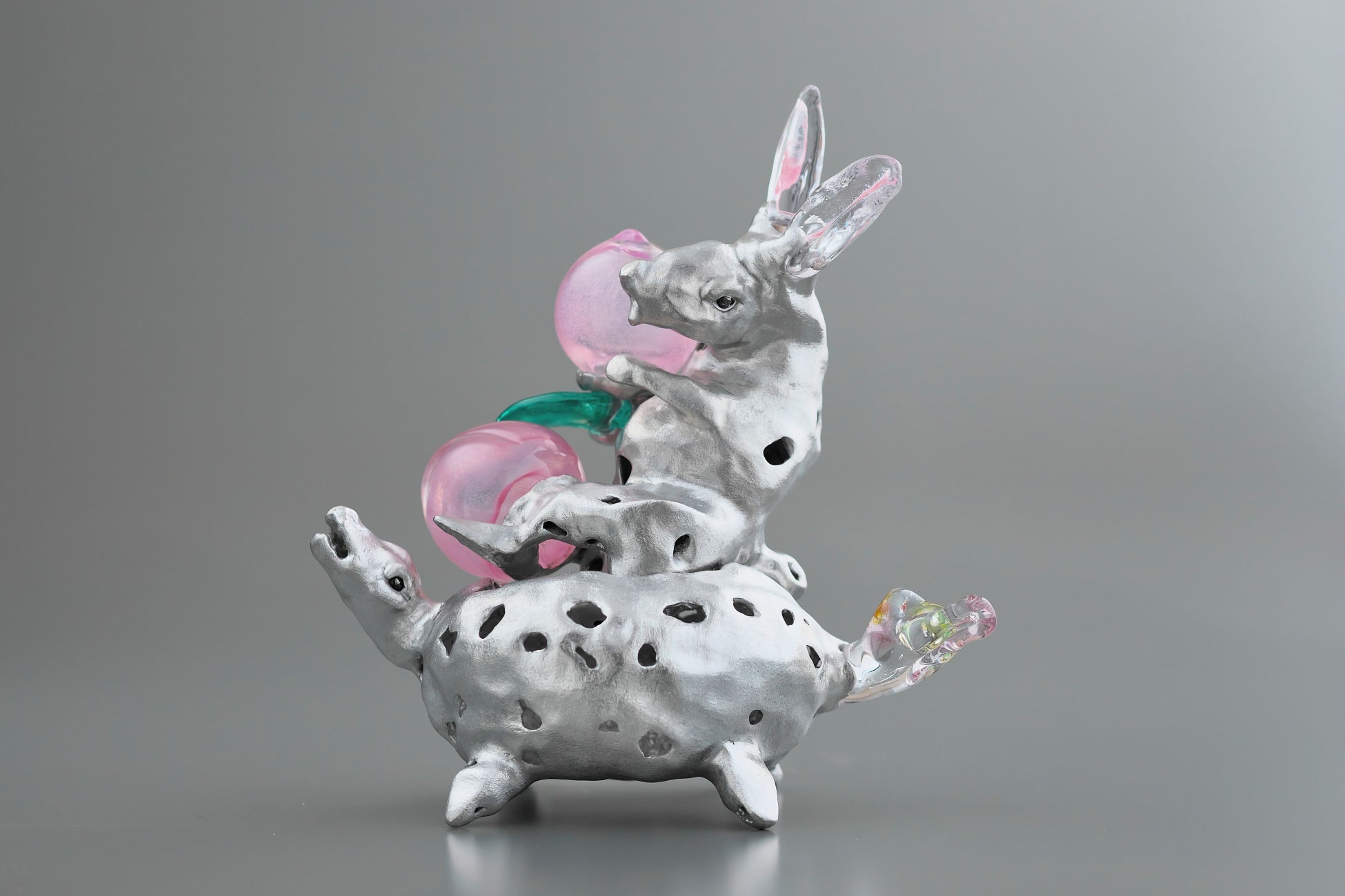 うさぎの部分が蓋になっている蓋物作品。香炉としても使用できます。
