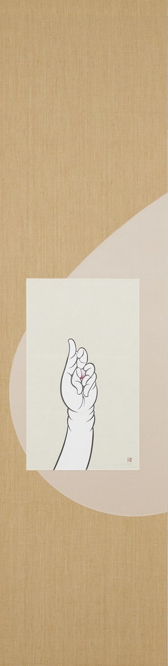 本展では、村山氏が日頃から蒐集してきたヨーロッパアンティークのブックマークやトワルドジュイ、アメリカのプリント古布、江戸期の小袖の一部などを本紙に見立てた村山氏オリジナルの新作表装作品を中心に、現代アート作品を村山氏独自の感性で表装したアーティストコラボ作品も発表いたします。コンセプチュアルでメッセージ性の強い現代アート作品が、村山氏の表装を纏うことによって人の座した目線にまで浸透圧を高め、日常空間の室礼に溶け込みます。