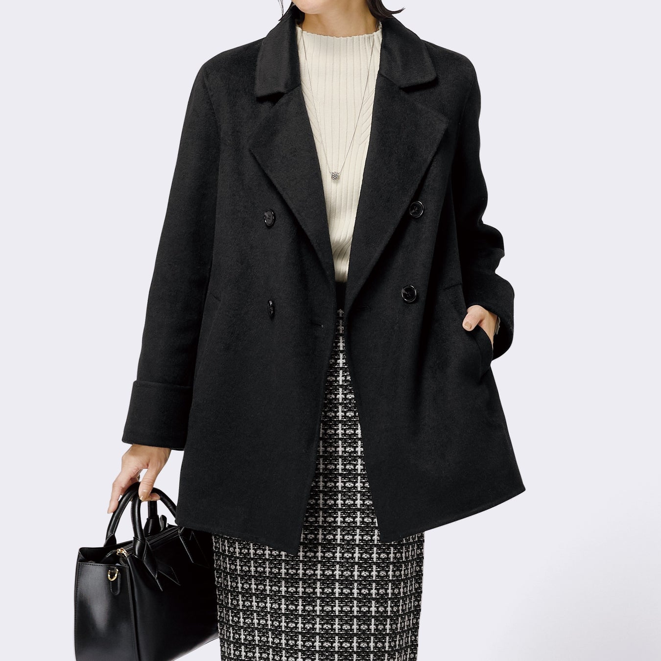 高い位置のボタンでスタイリッシュに仕上がるコート。適度なゆとり感がインナーを選ばず、ロングシーズン着ていただけます。