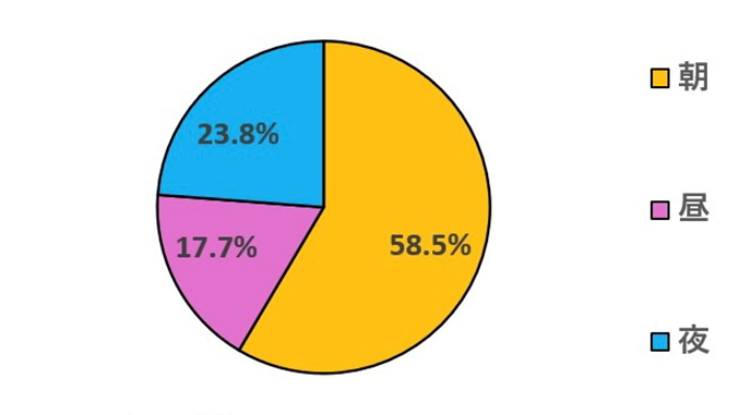 「朝」食べるという方が最も多く58.5%いらっしゃいます。朝食としての需要なのでしょう。トーストと一緒に食べるにはちょうどいいですね。続いて「夜」が23.8%で「昼」が17.7%となっています。夜間の間食としてでしょうか。