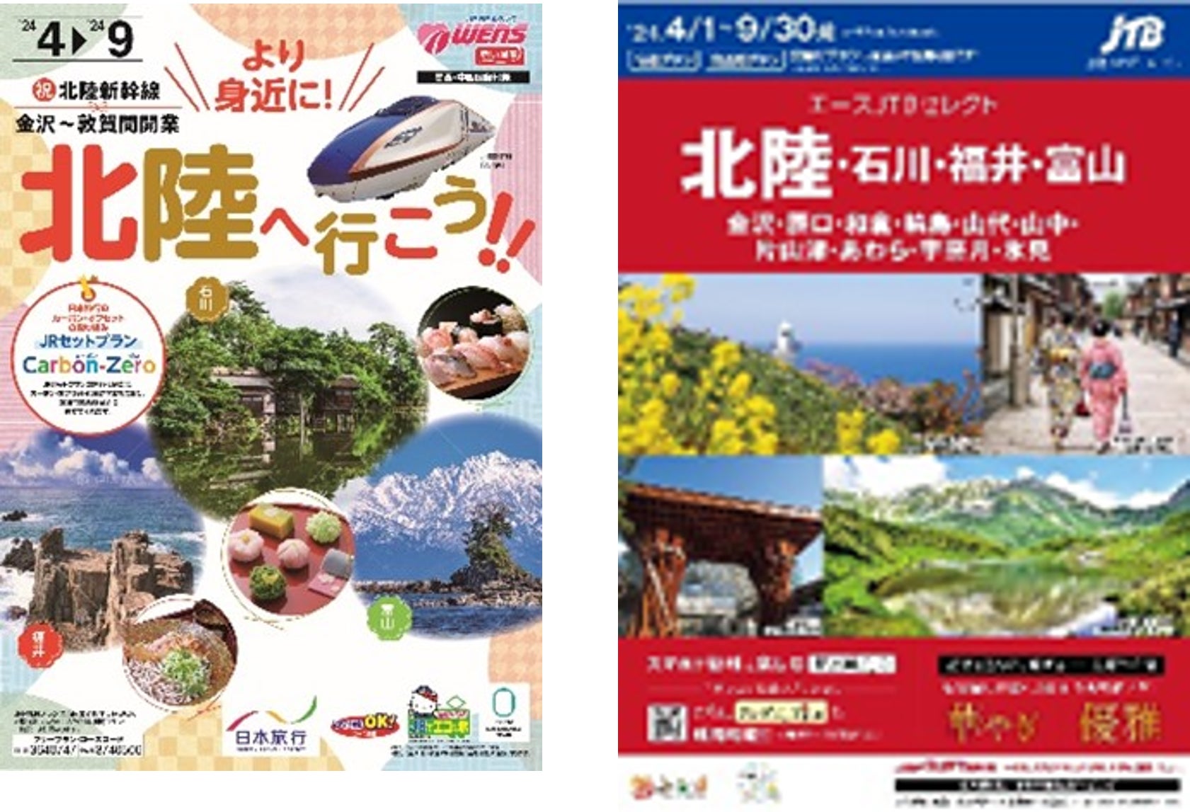 主な旅行会社では、地域の状況を踏まえながら、北陸の魅力を味わえる旅行商品を順次発売します。新幹線延伸開業による新しいルートでの新しい旅も出てきます。今後も地域産品の特典をセットしたJR利用旅行商品など北陸を応援する企画を検討してまいります。