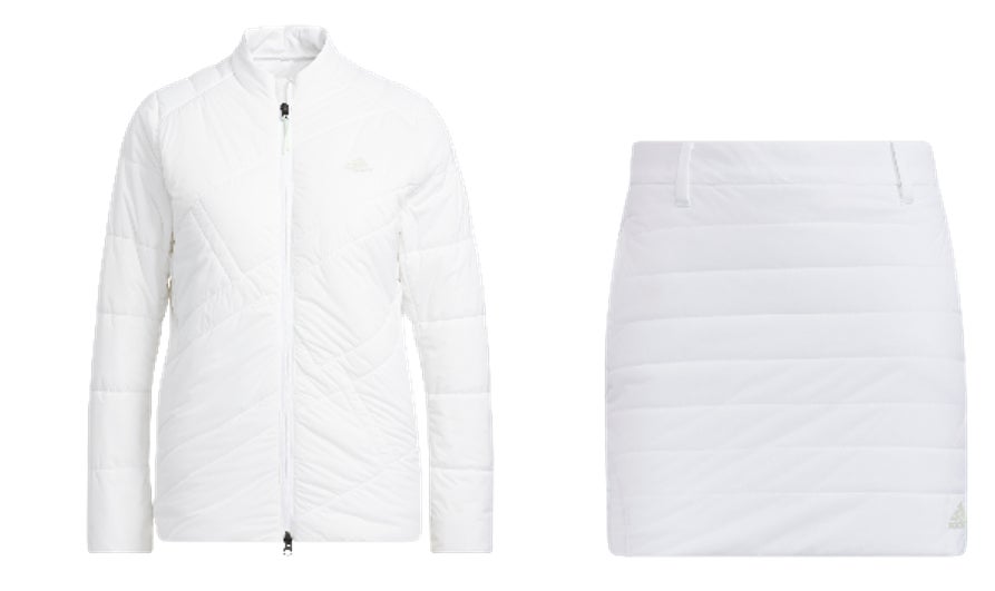 ストレッチ、防風、保温、撥水性能の中わたジャケットとストレッチスカート。寒い時期でもゴルフを楽しみたいアクティブなゴルファーを支えるパフォーマンスアパレル。