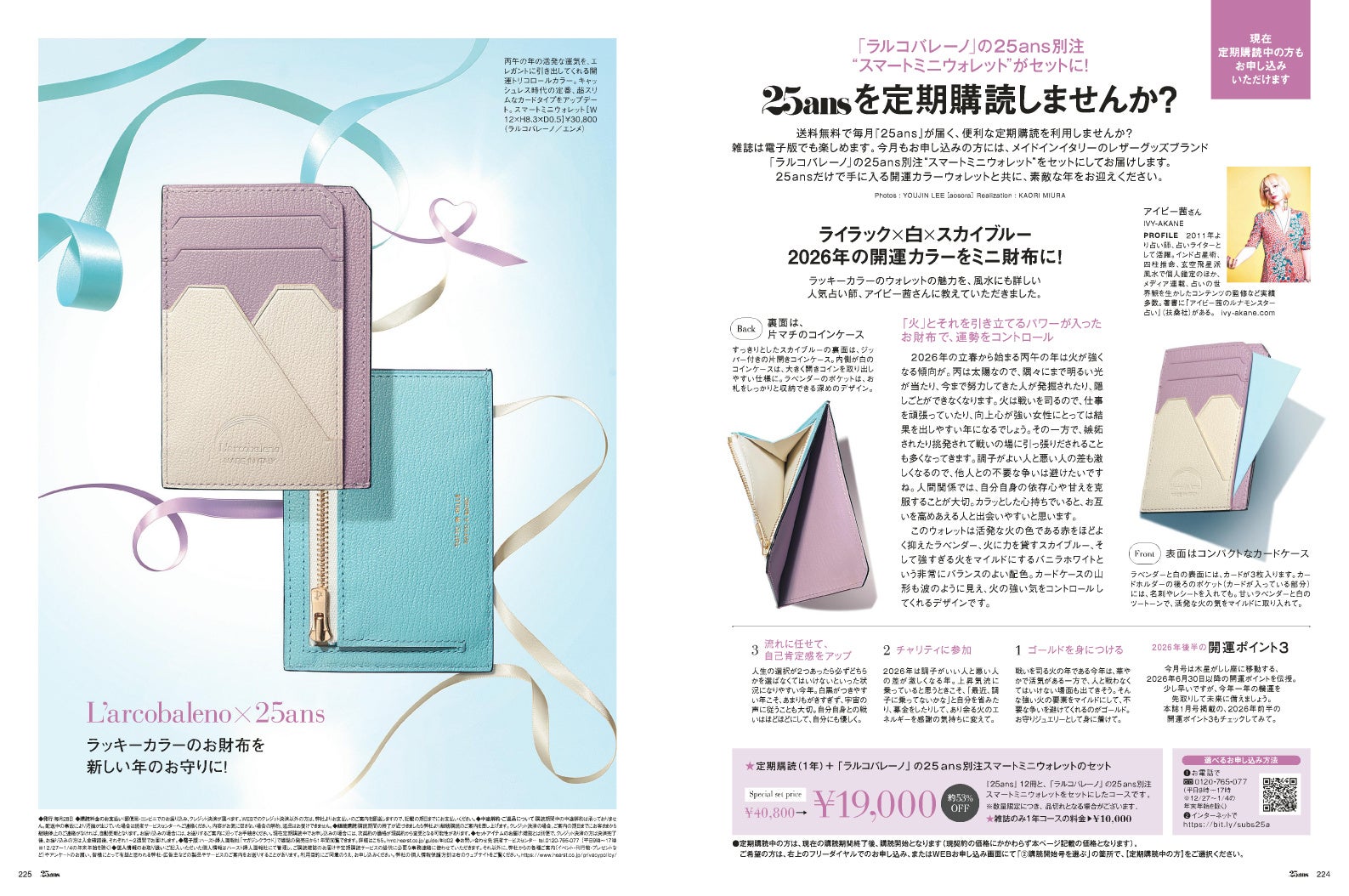 今お申し込みの方には、メイドインイタリーのレザーグッズブランド「ラルコバレーノ」の25ans別注スマートミニウォレットが(¥30,800)がセットに。