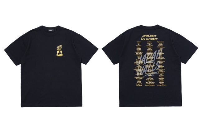 アーティストのための実用的なアイテムとしてスプレー缶の収納ポケットを備えたベストや、ジャケットとTシャツのほか、JAPAN WALLS参加アーティスト全員の名前を連ねた10周年記念Tシャツを、100枚限定生産いたしました。