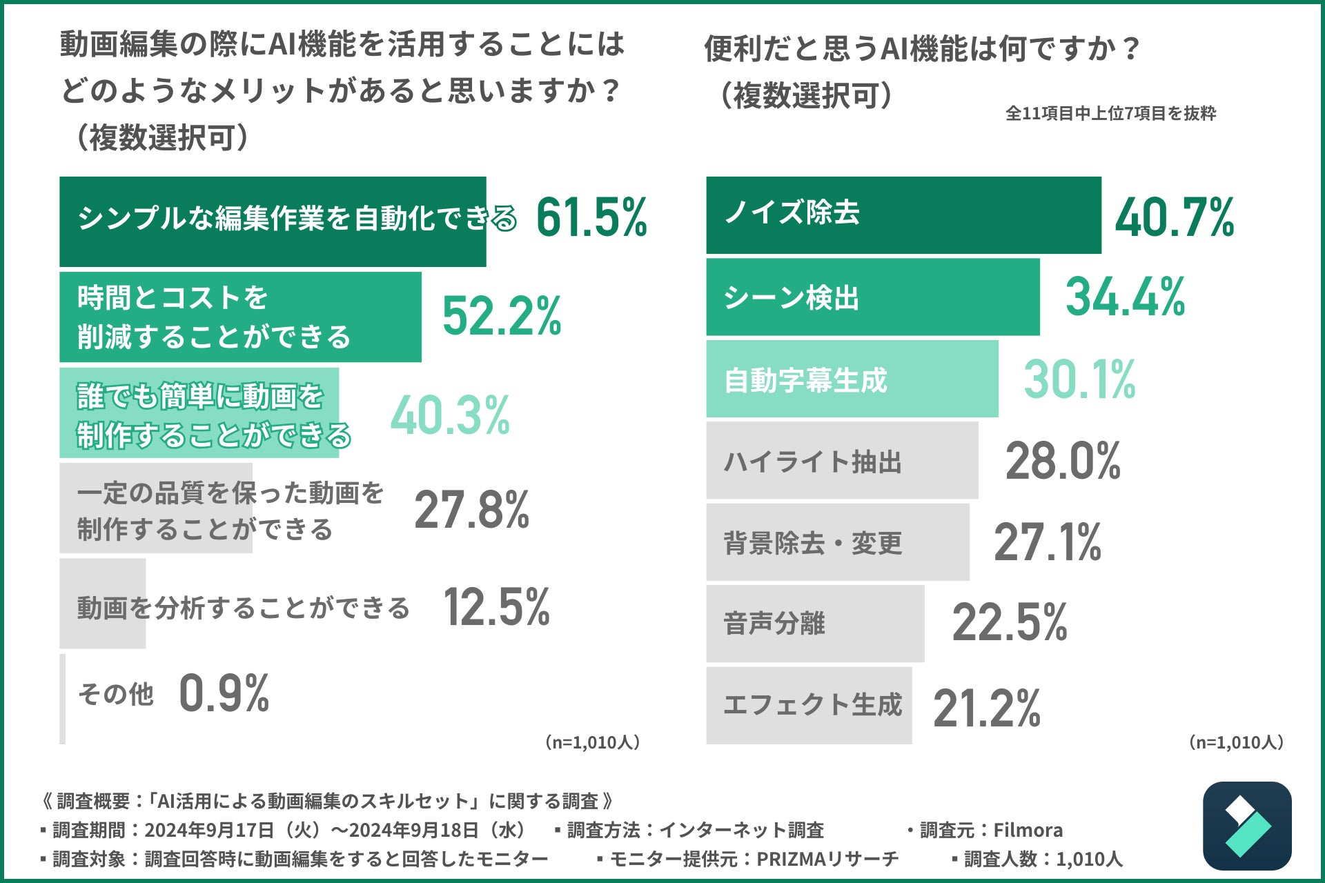 株式会社ワンダーシェアーソフトウェア(本社所在地:東京都千代田区、代表:呉 太兵)は、動画編集をする方を対象に「AI活用による動画編集のスキルセット」に関する調査を実施しました。