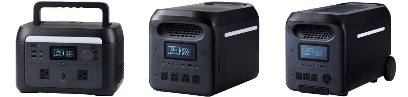 ■電源のない場所でも家電製品の使用やデバイスの充電などを可能にする、AC・DC・USB出力対応のポータブル電源です。用途に応じて容量が選べる3製品をラインアップ。