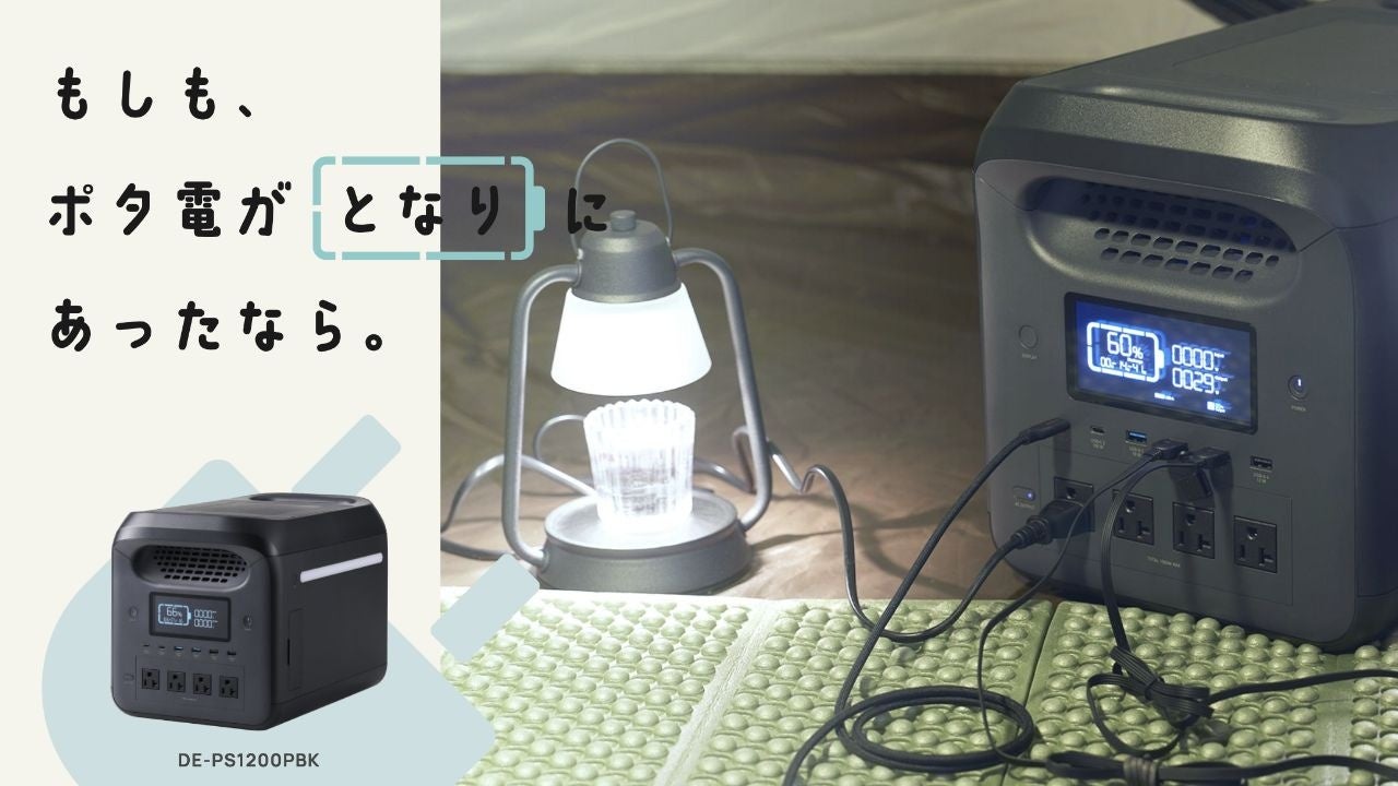 <DE-PS1200PBK ポータブル電源 1200P (容量 1229Wh / AC出力 1500W)>