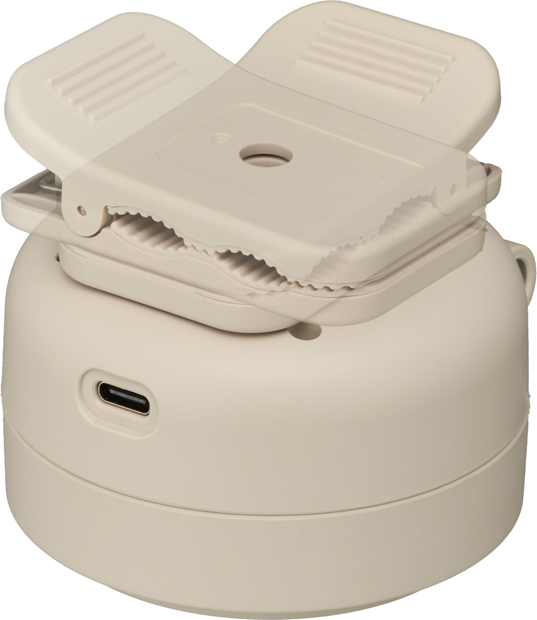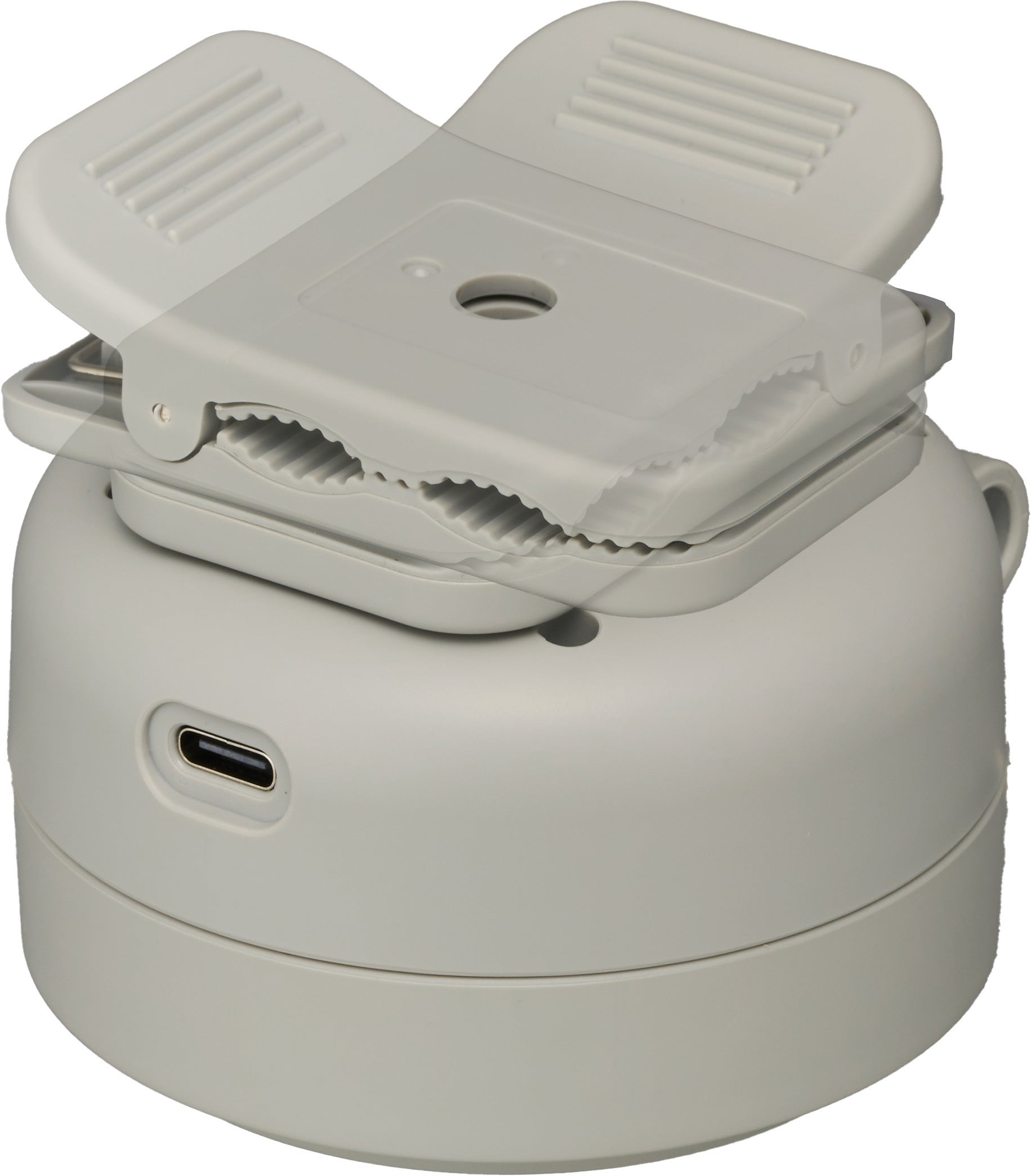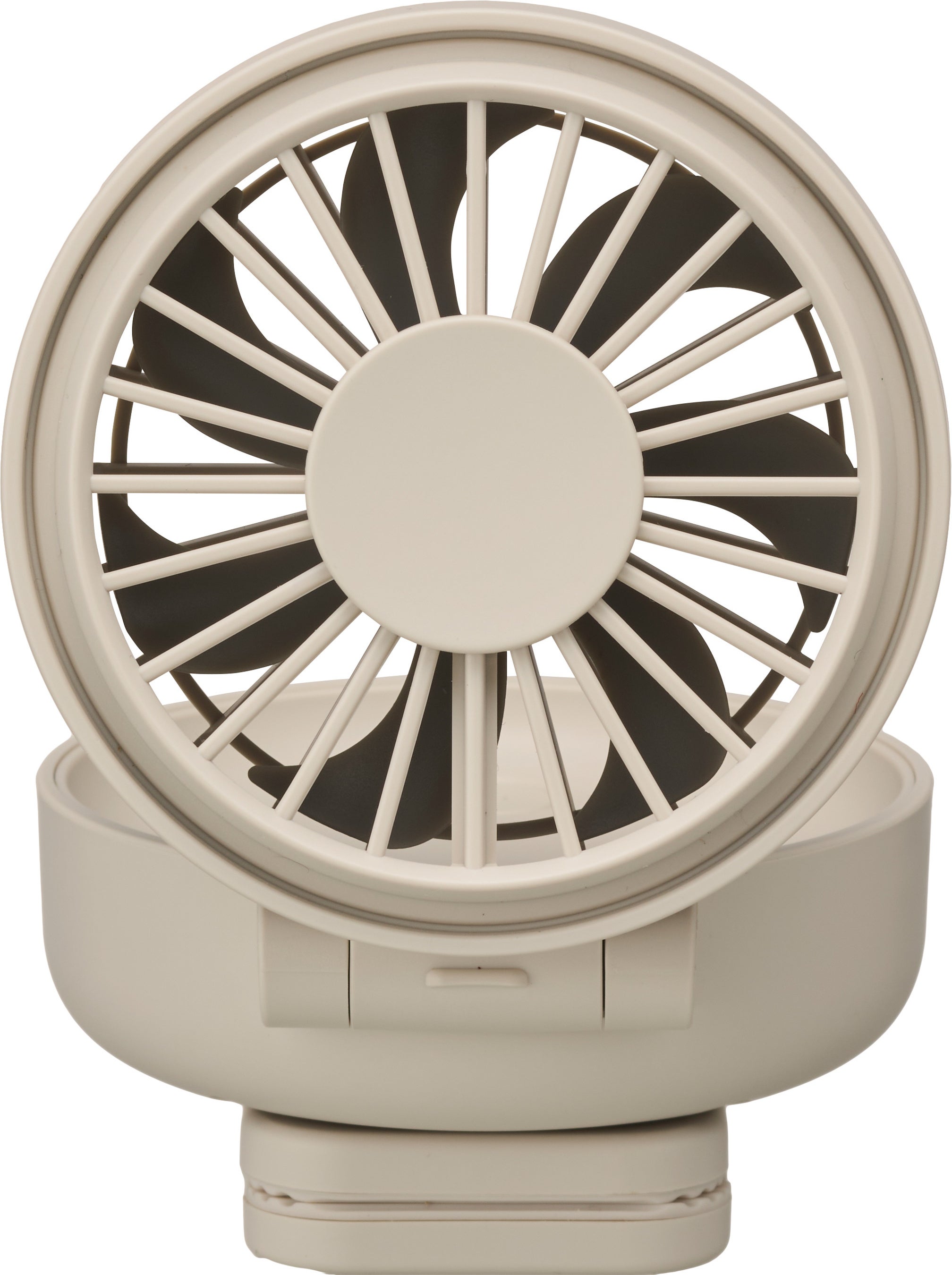 本体には水平方向に360度回転するクリップがついています。ファン部分は最大で180度開閉可能です。